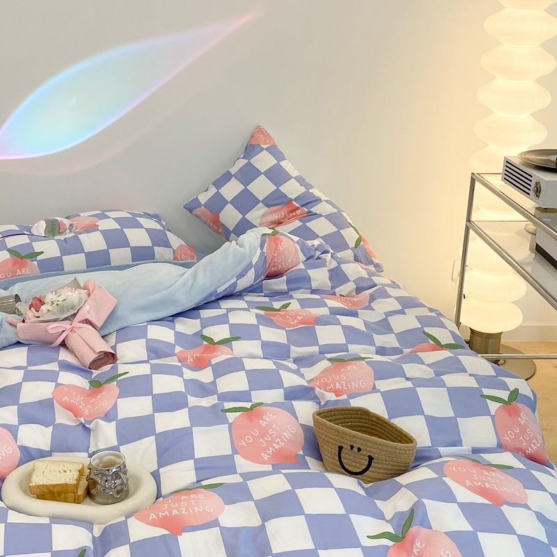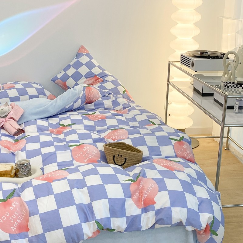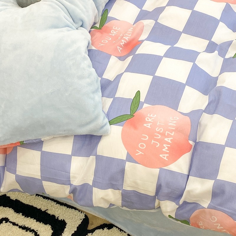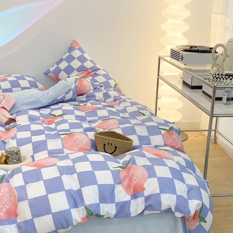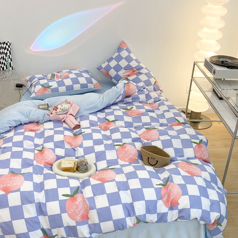 商品名称:昔可家纺 2021新款棉加牛奶绒四件套 棋盘桃桃