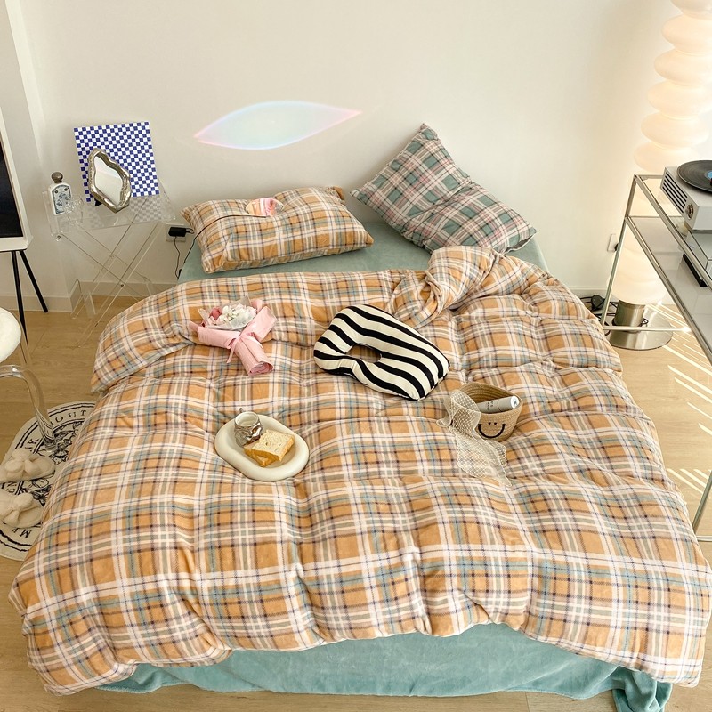 (总)昔可家纺 2021新款学院风jk格子混搭牛奶绒