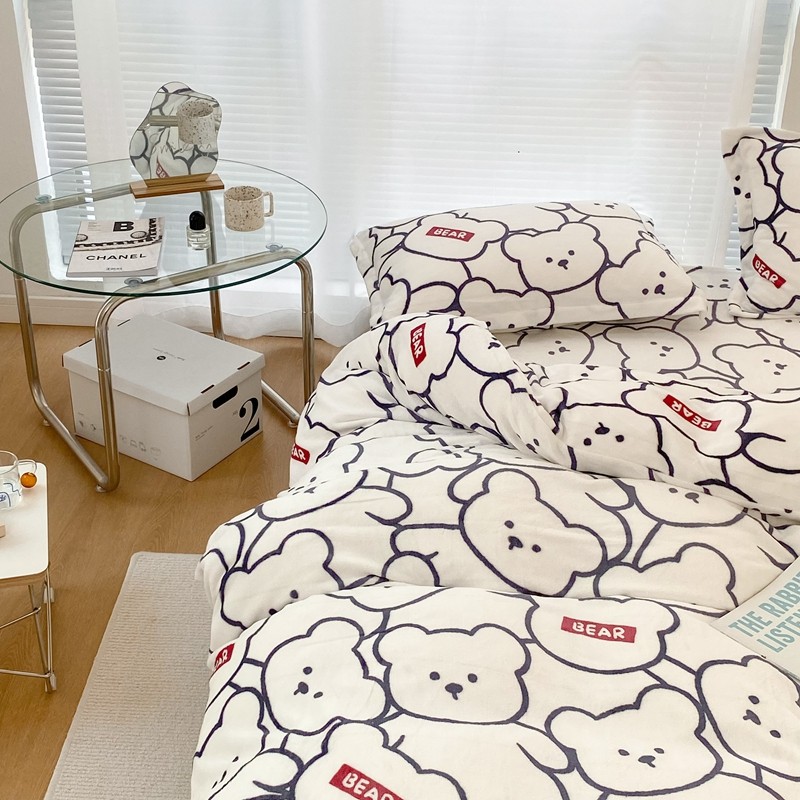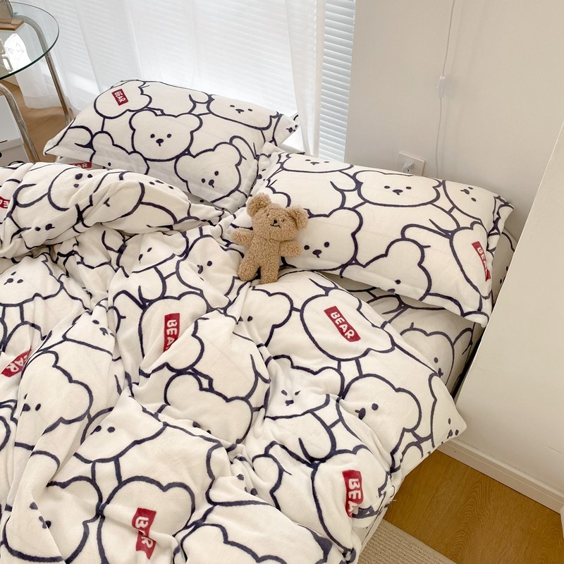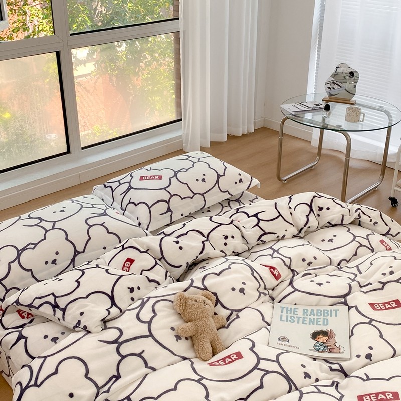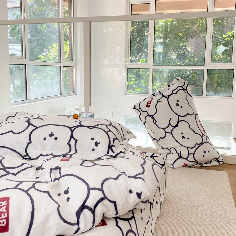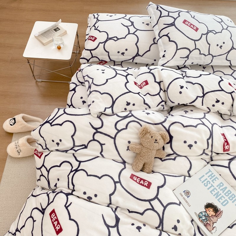 商品名称:昔可家纺 2021新款牛奶绒四件套第二组图 可比小熊米白