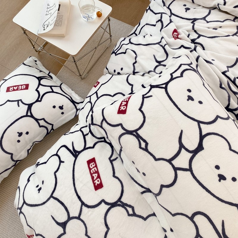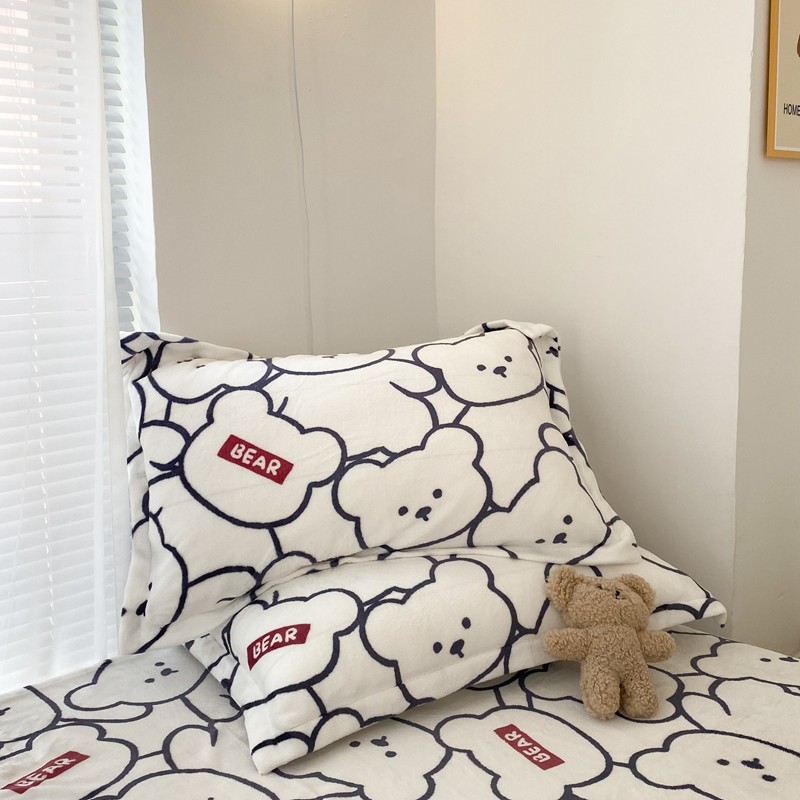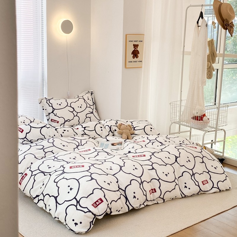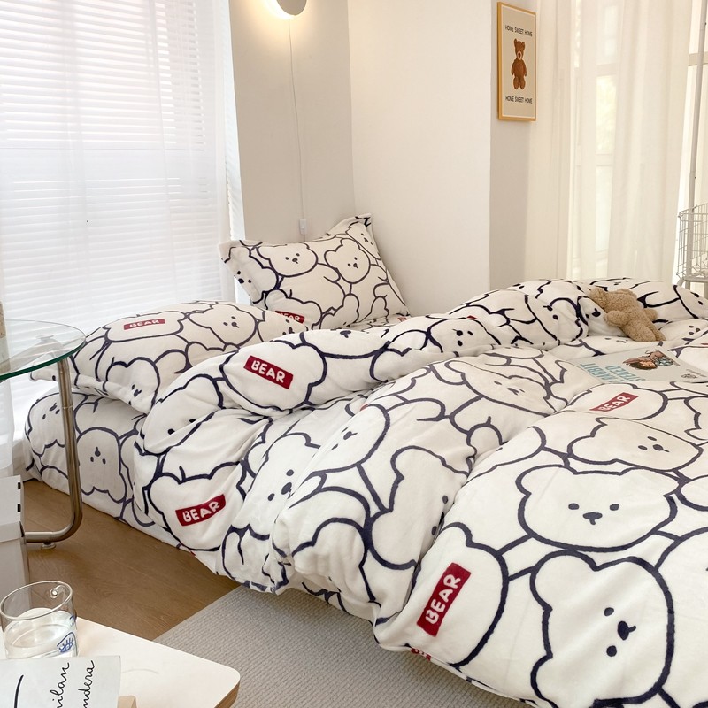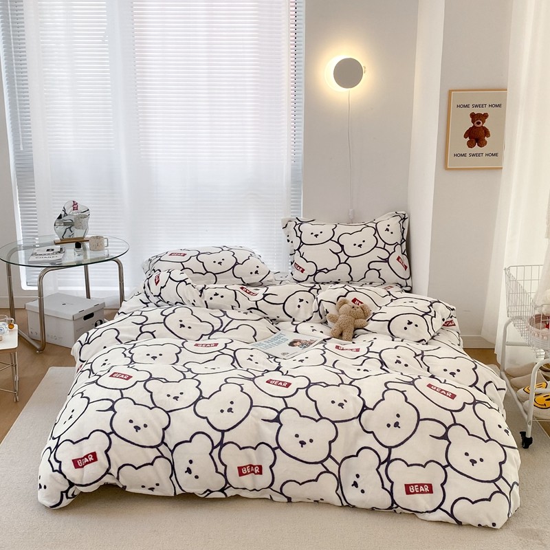 商品名称:昔可家纺 2021新款牛奶绒四件套第二组图 可比小熊米白