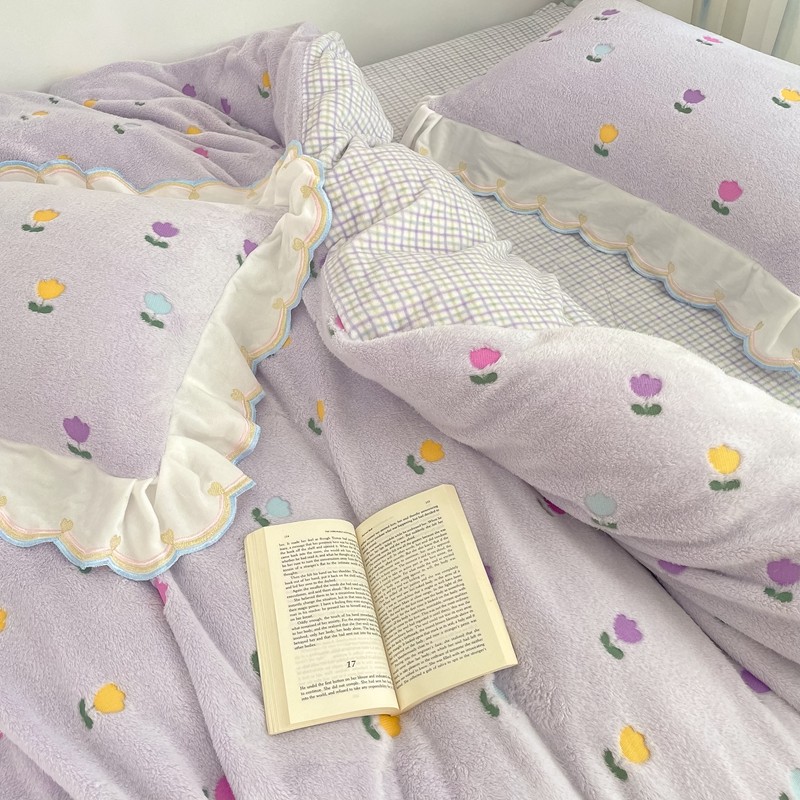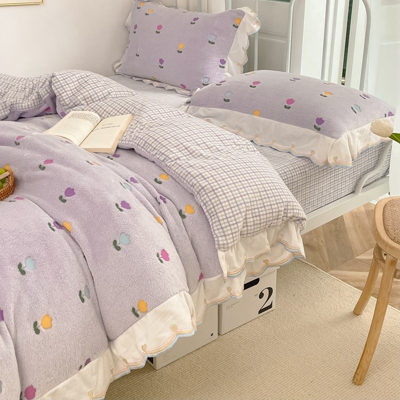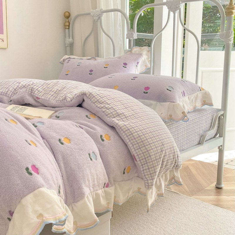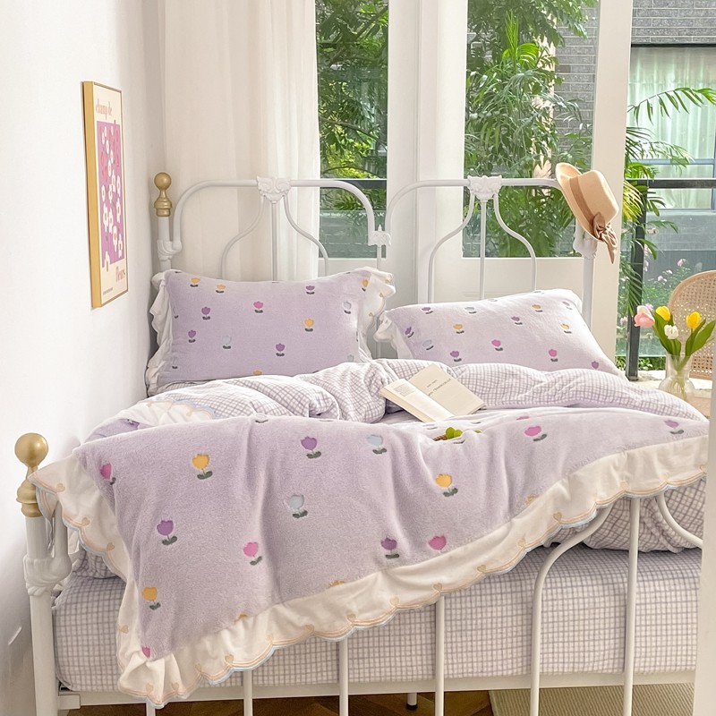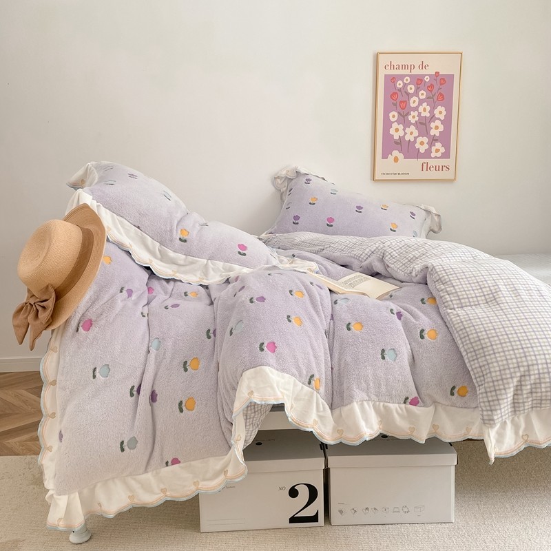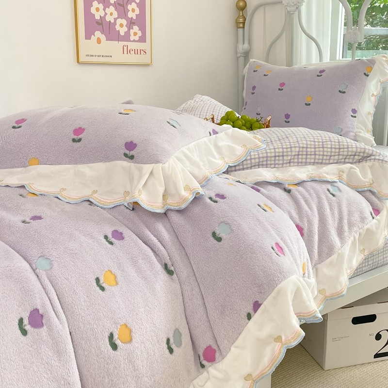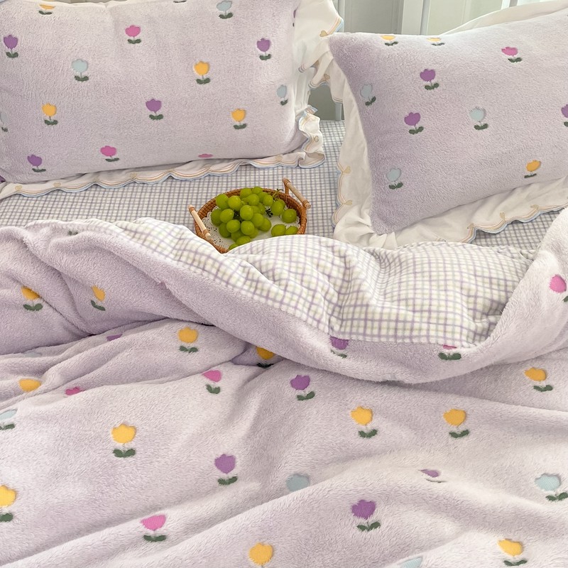 昔可家纺 2021新款coco雪貂绒四件套 小郁金香紫