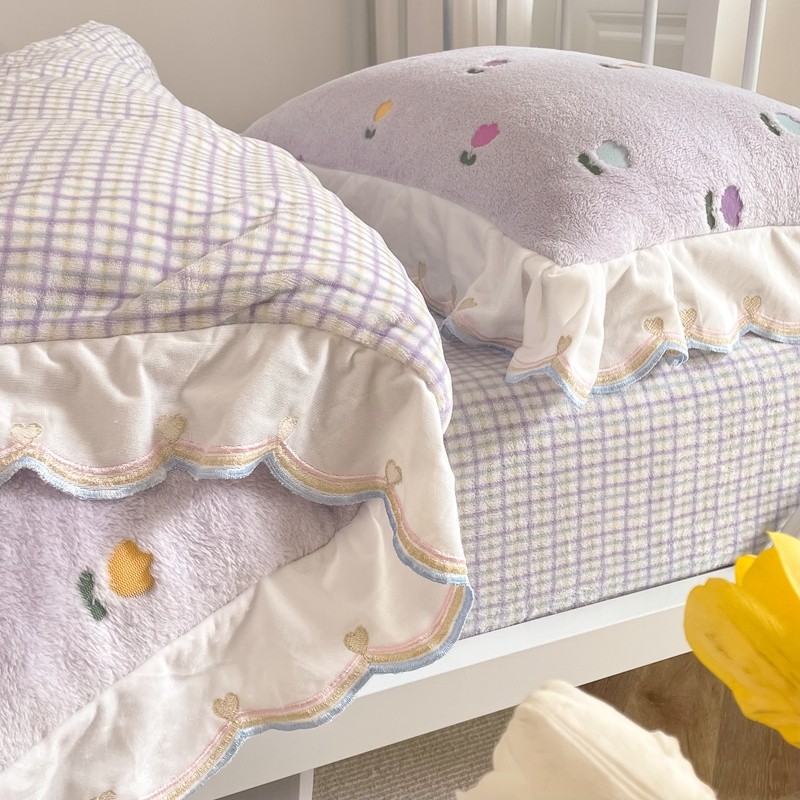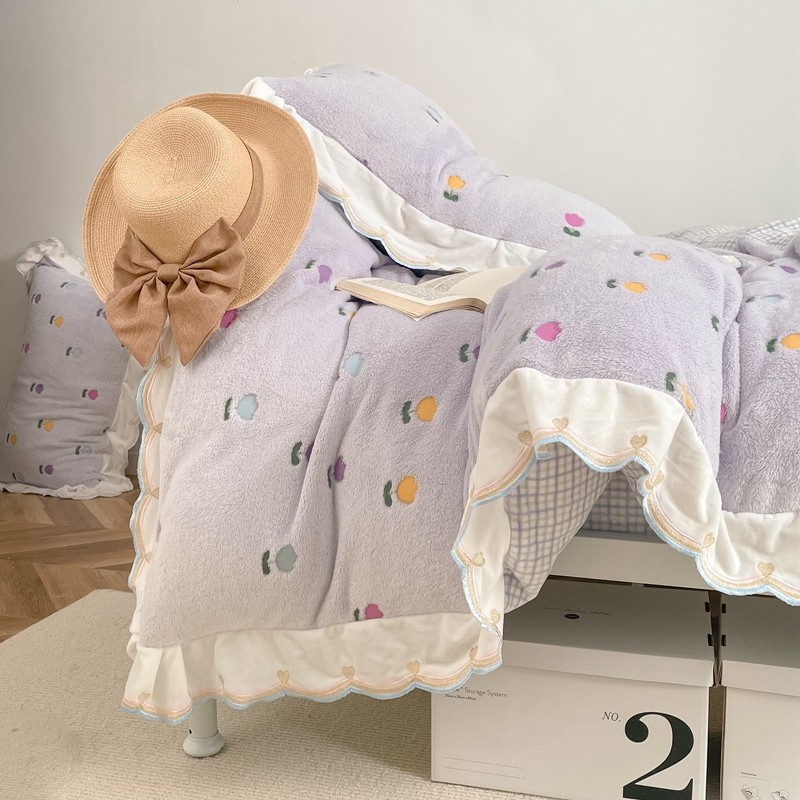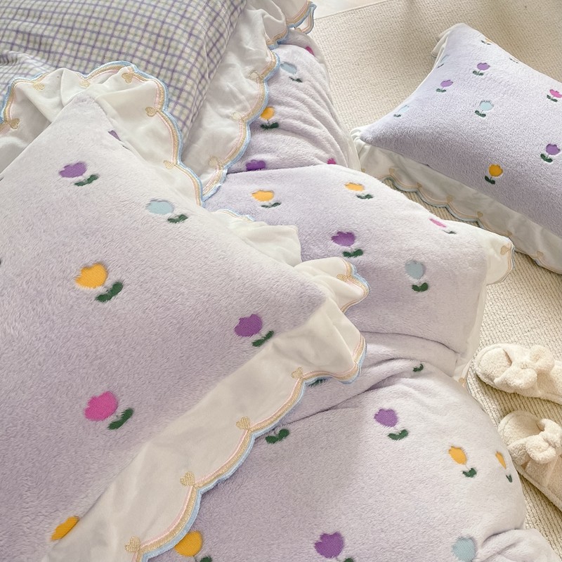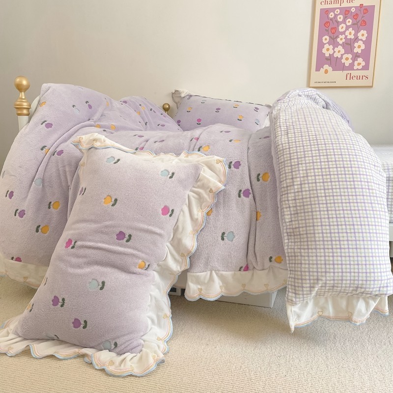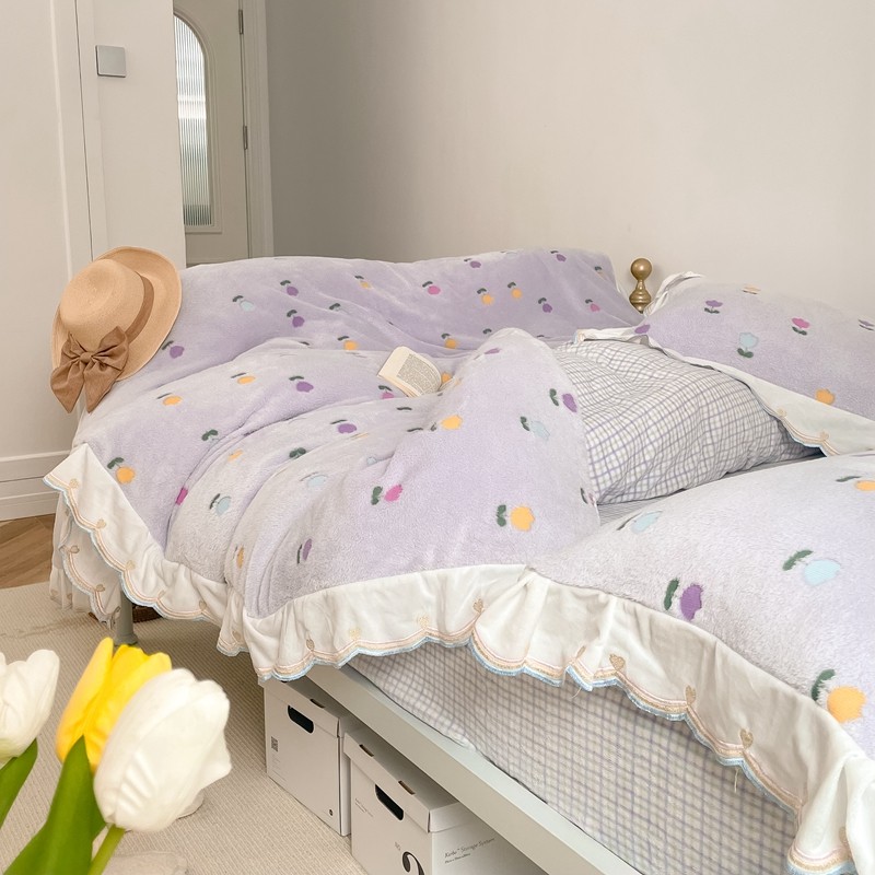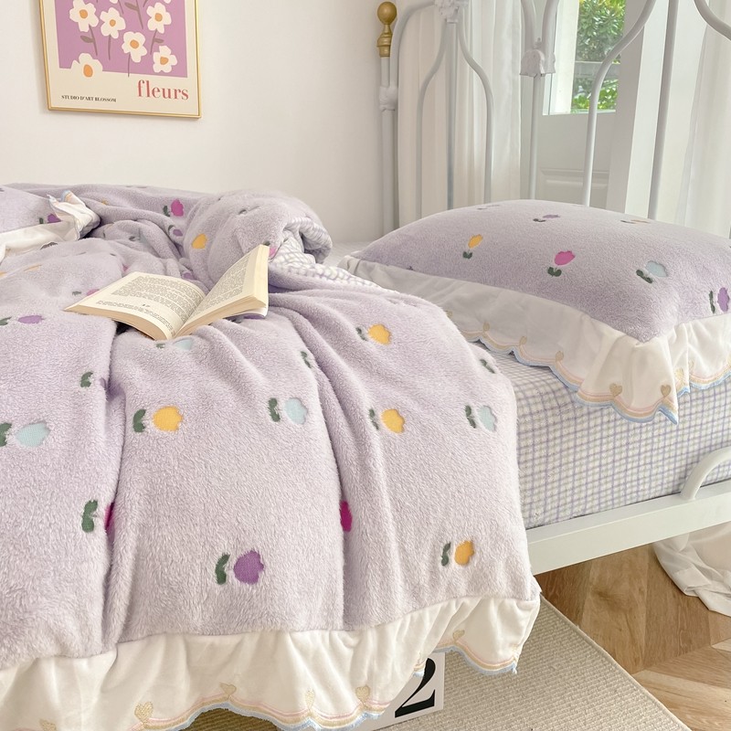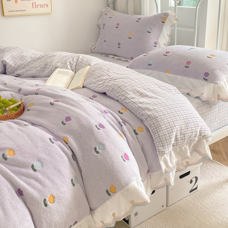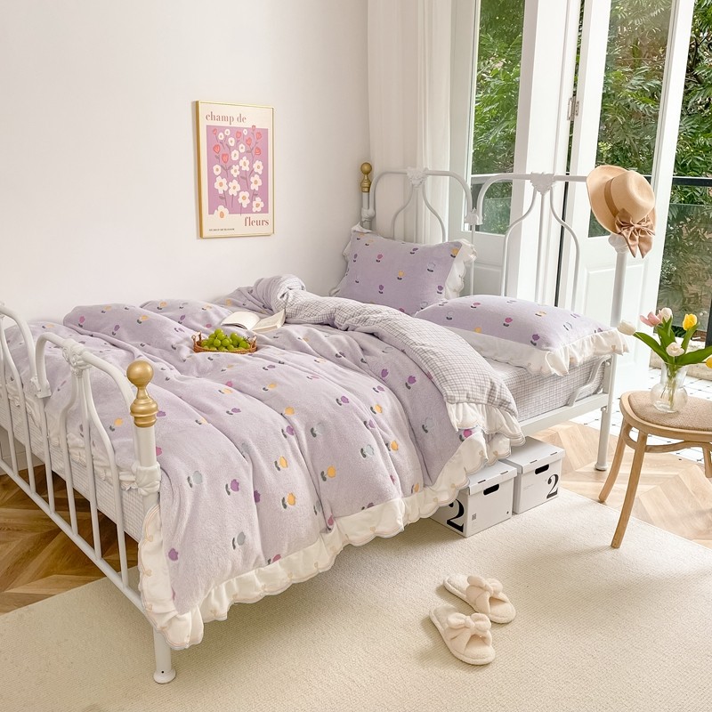 昔可家纺 2021新款coco雪貂绒四件套 小郁金香紫