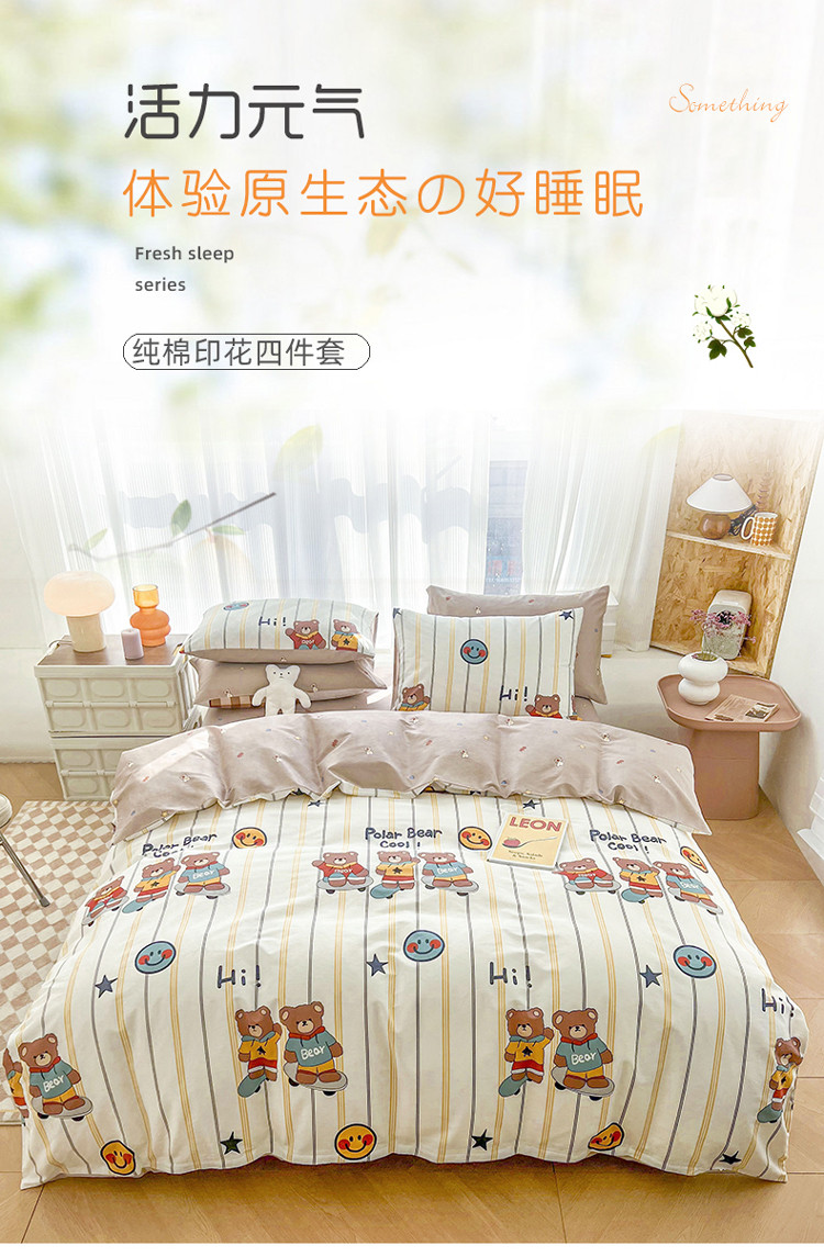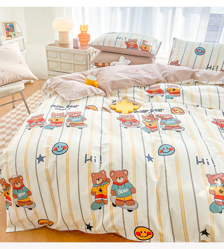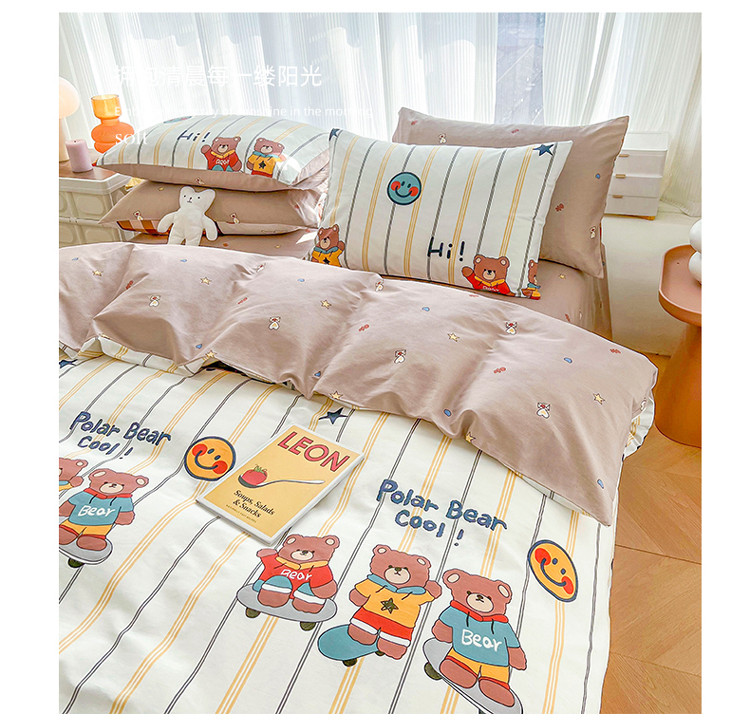 感遇家纺 2022新款全棉印花四件套 滑板小熊