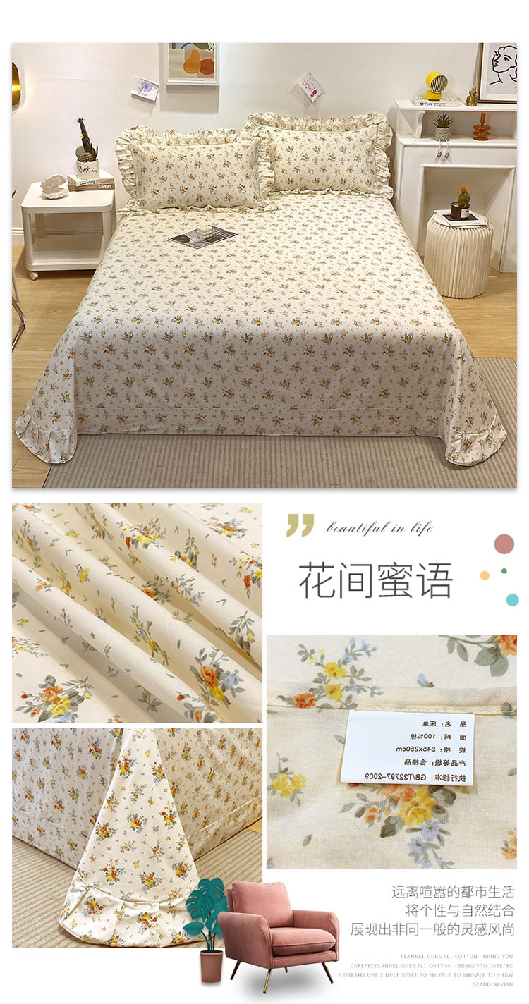 商品名称:宝齐莱 2022新款13372韩版全棉印花单床单 花间蜜语-1
