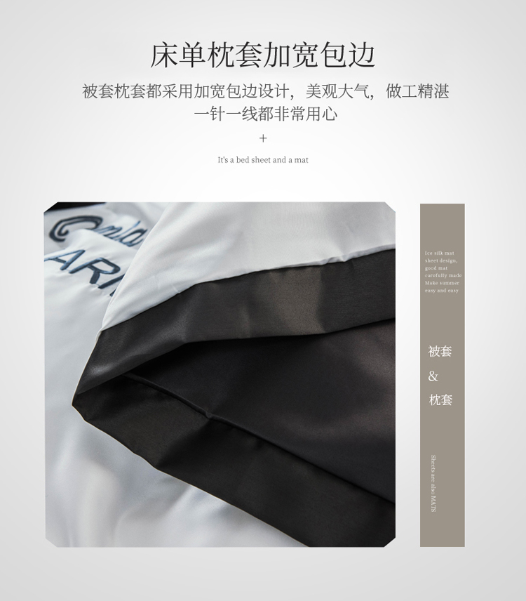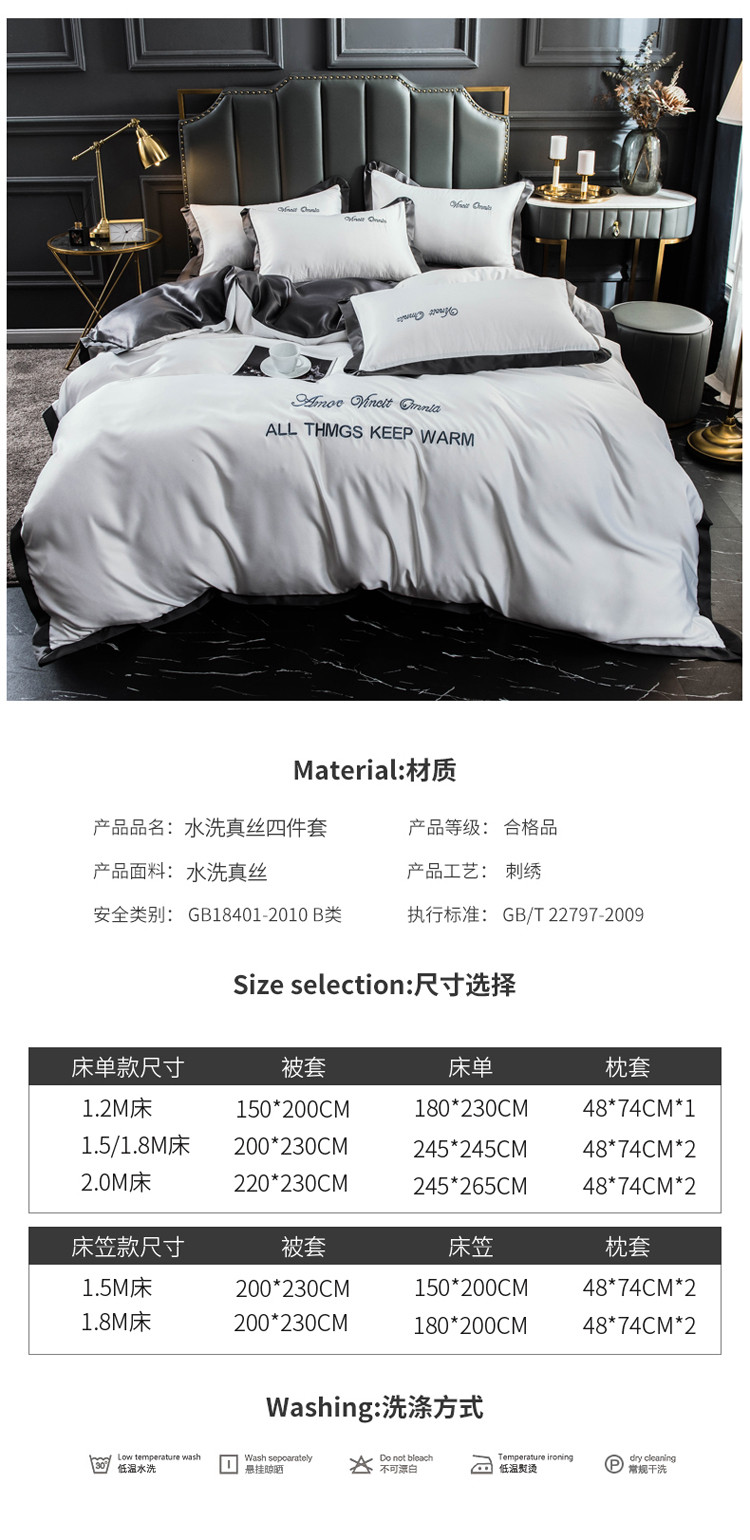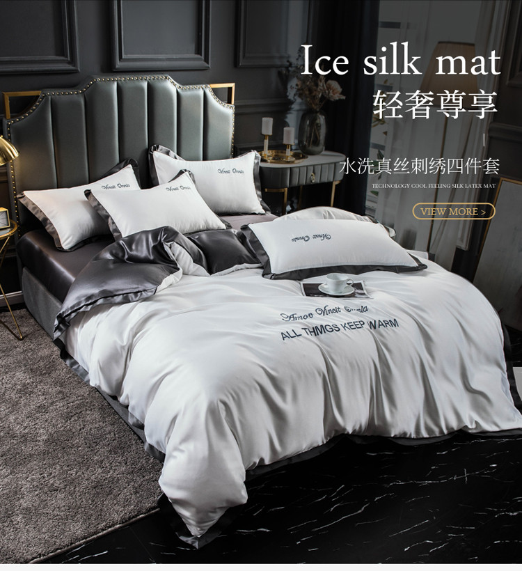 商品名称:欧冠 2022新款水洗真丝盛夏系列四件套 白+深灰