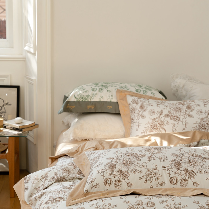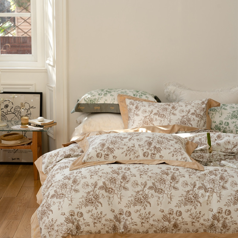 优然居 新款100支数码印花刺绣工艺款四件套-克里斯汀 奶咖