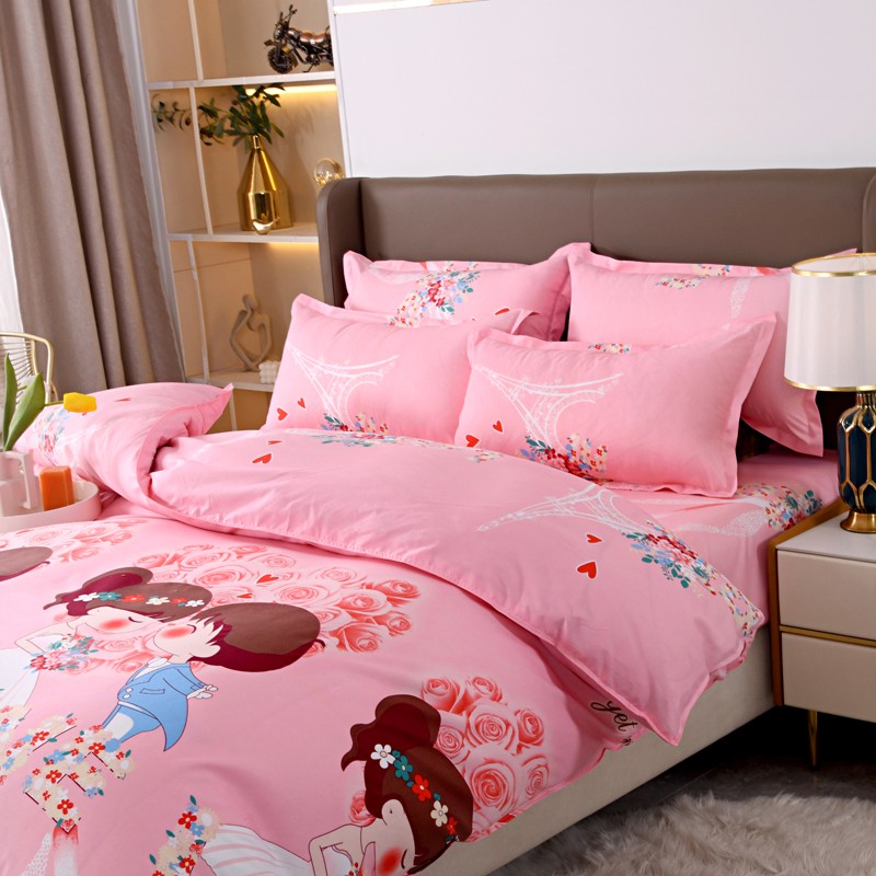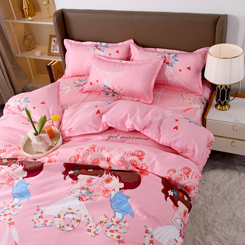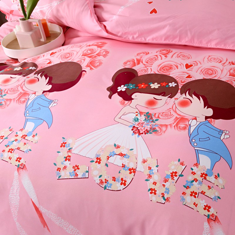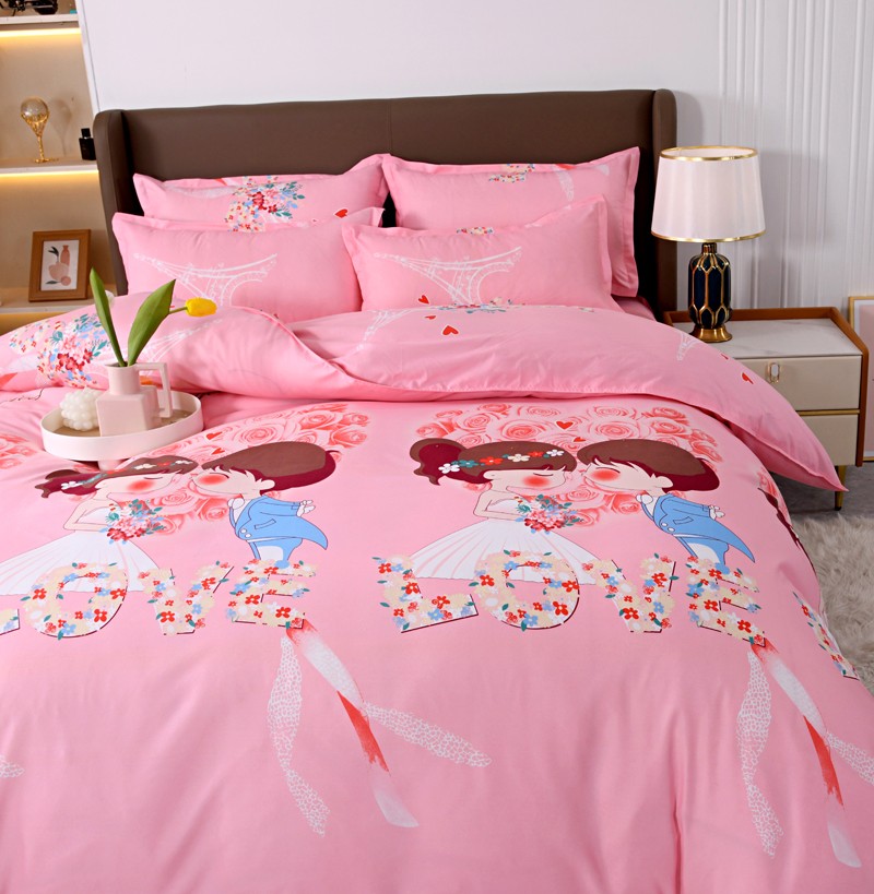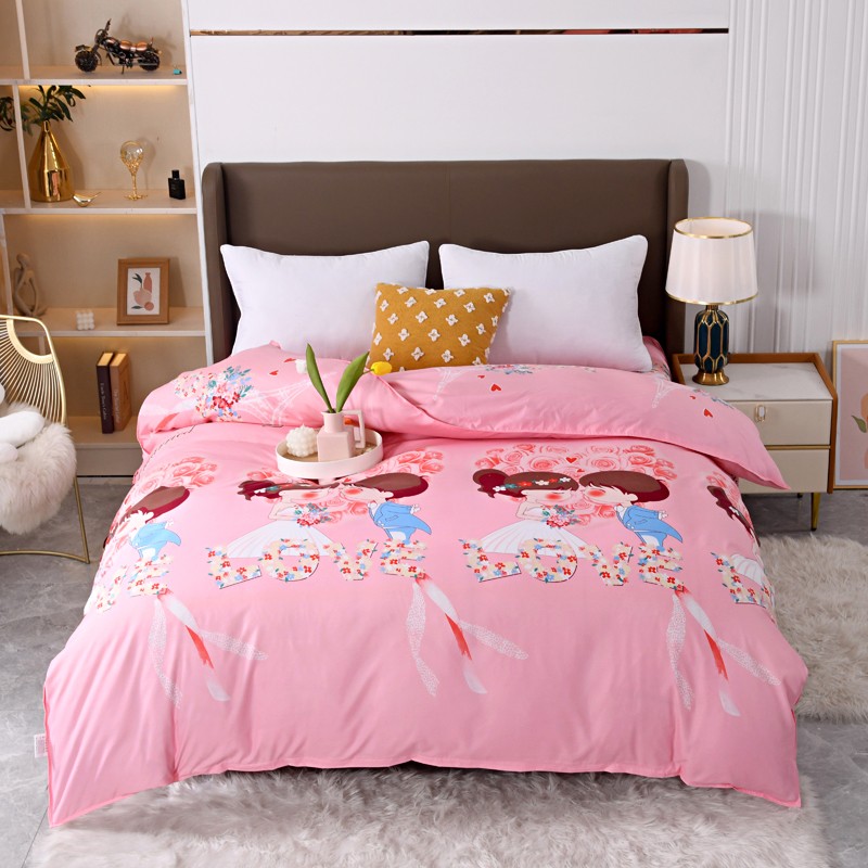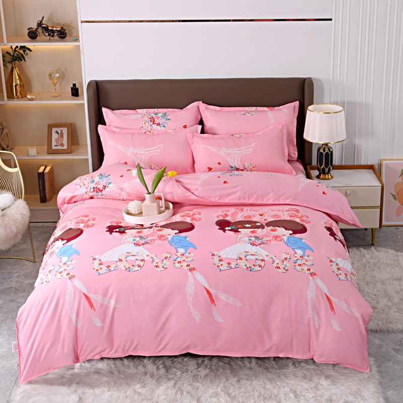 梵巢家纺 芦荟棉三四件套,床单,被套,枕套化纤四件套心心念念,心心念念