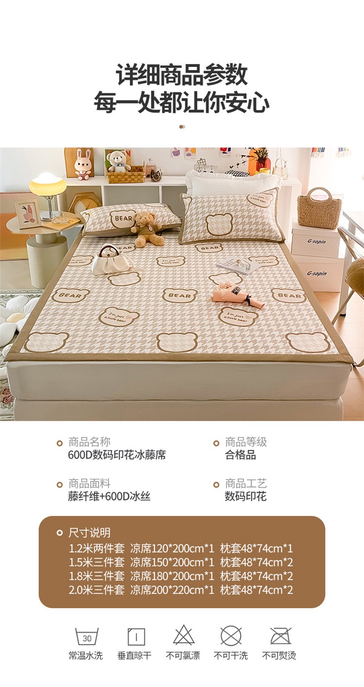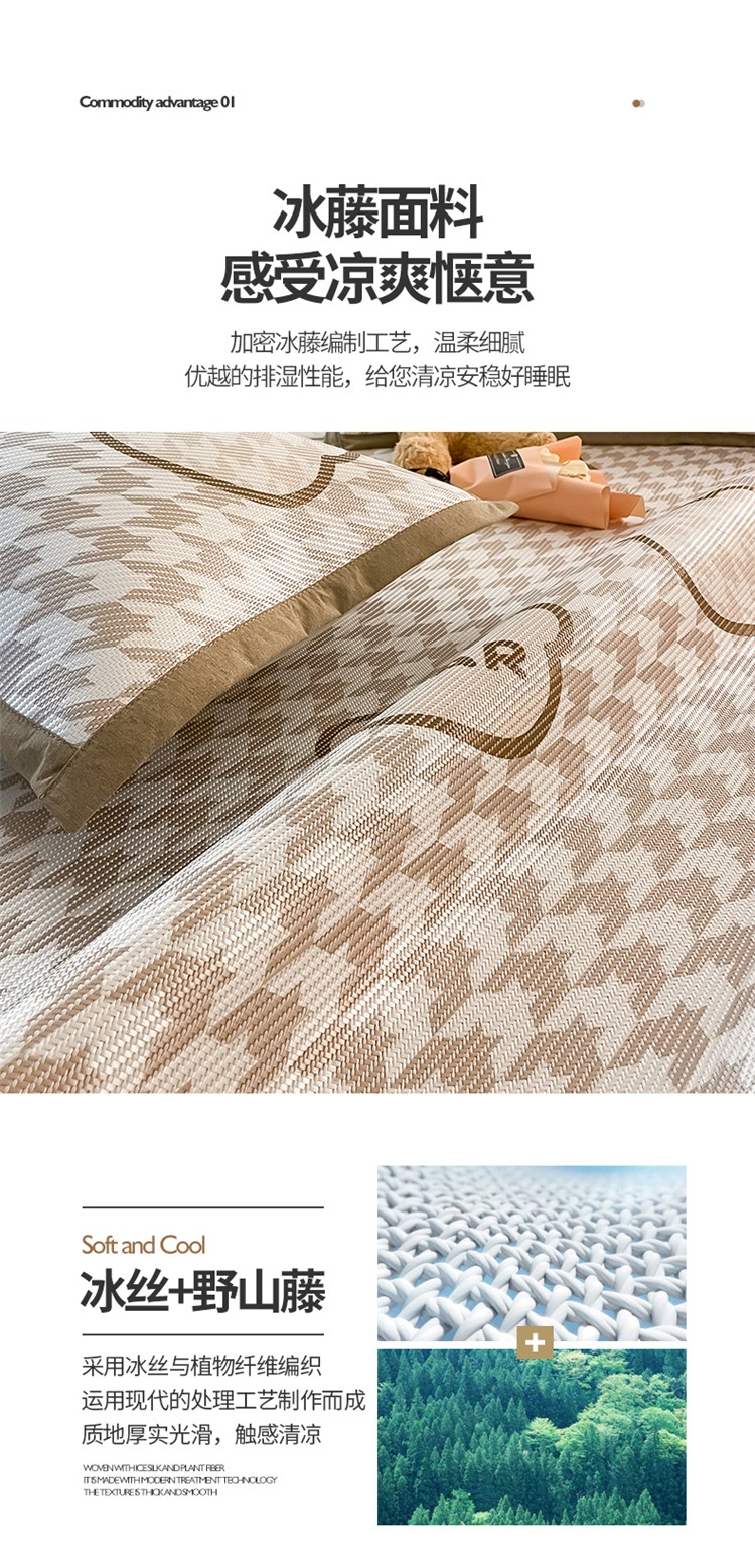 商品名称:懒猫家纺 2022新款600D数码印花冰藤凉席 千鸟格
