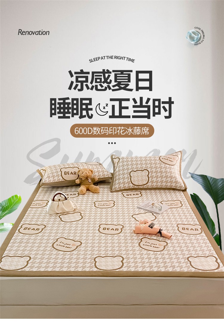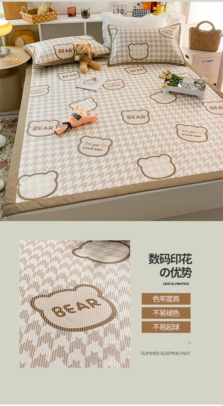 (总)懒猫家纺 2022新款学生宿舍冰丝数码印花凉席,尔雅,粉小兔,花韵,萝卜兔,清晨,手绘爱心,探索星球,甜心,小鲸鱼,小熊仔,元气兔