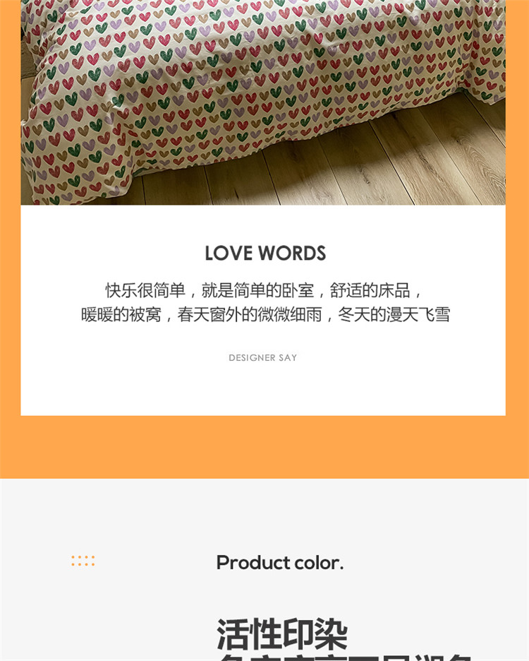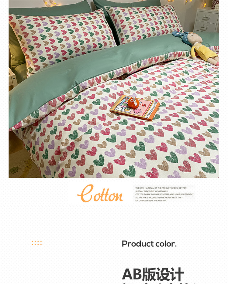 当前位置: 91家纺网 > 商品网购 > 床品套件 > 四件套 > 全棉普通四件套 > 琪格格纺织 2022新款纯棉小清新套件及单品 彩色甜心
