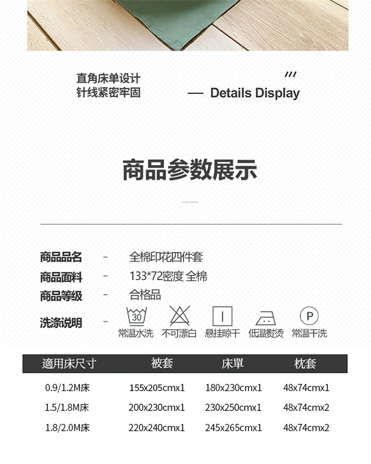 0.9~1.2m床单款四件套 | ¥95.00 |