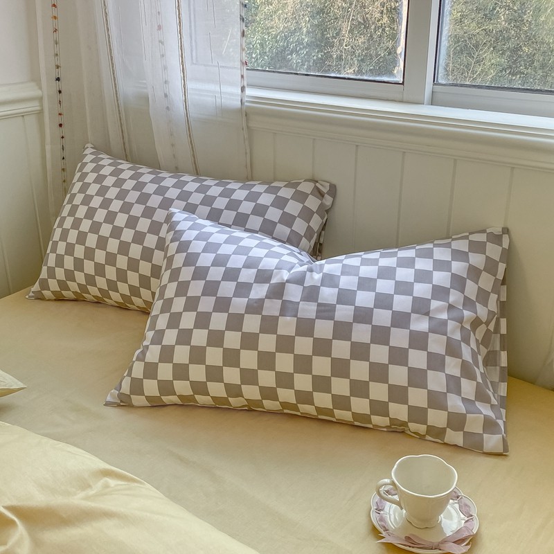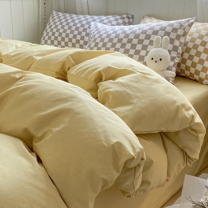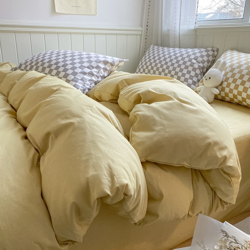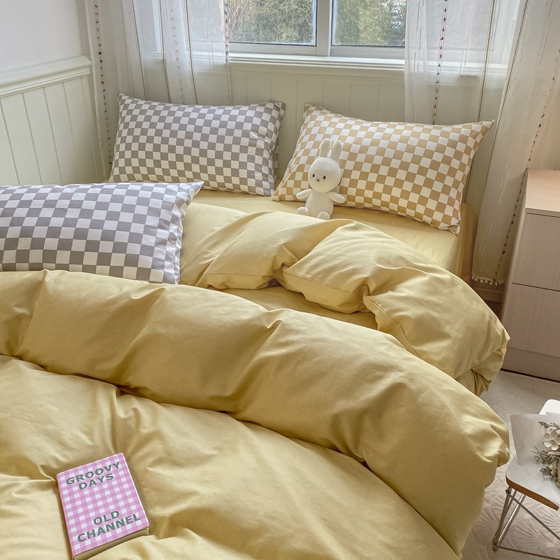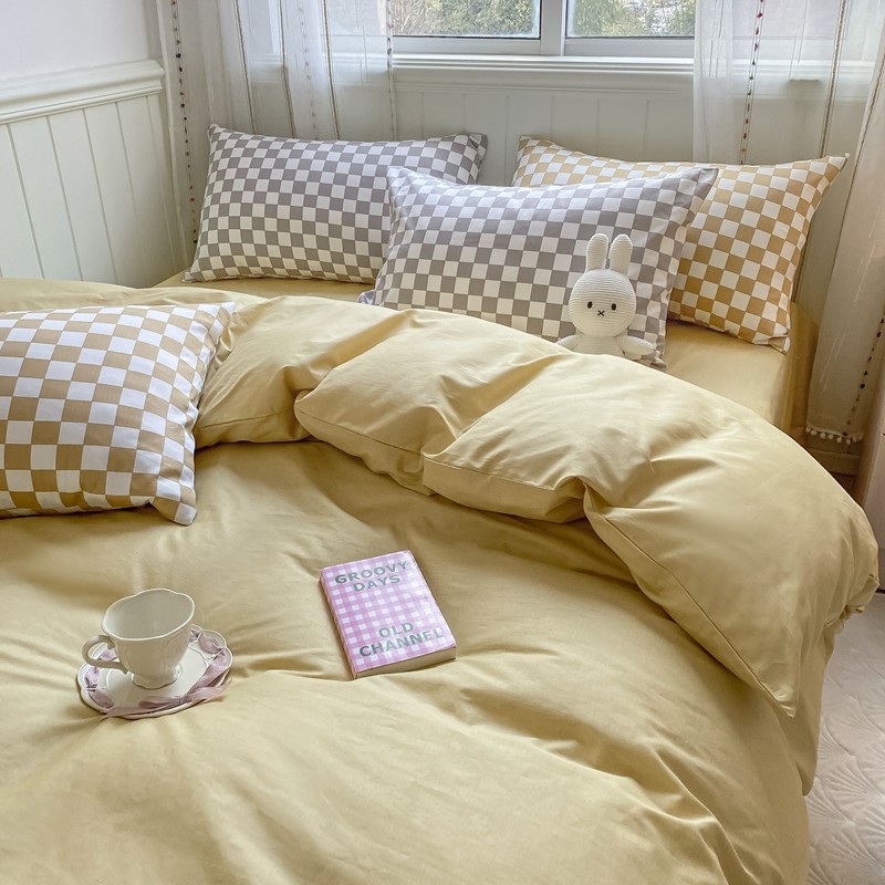 昔可2022新款混搭纯色棋盘格套件四件套 芒果黄驼棋盘