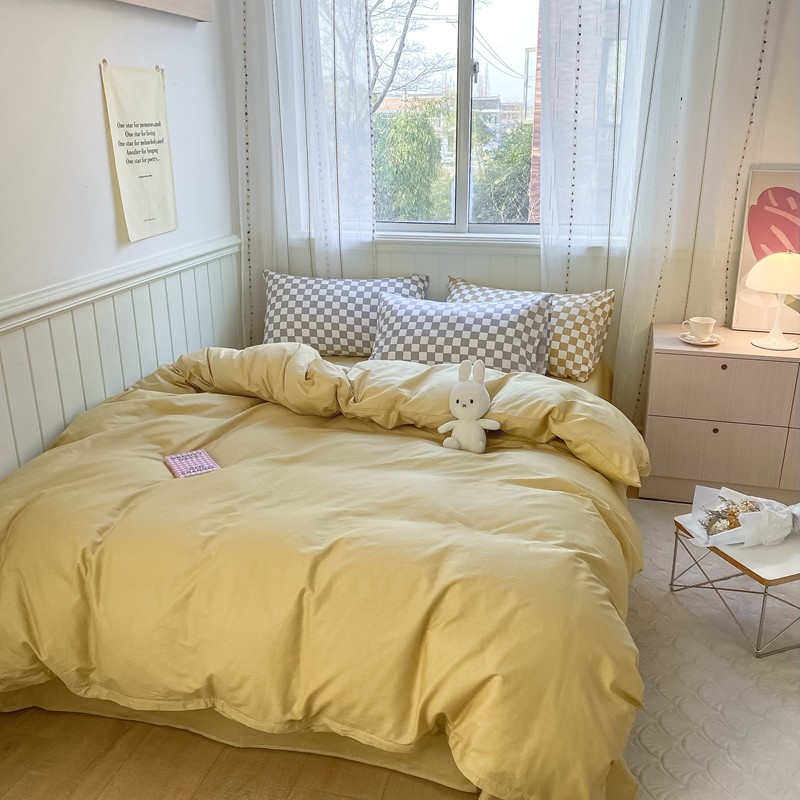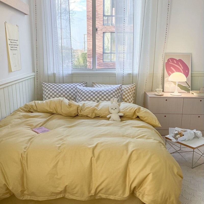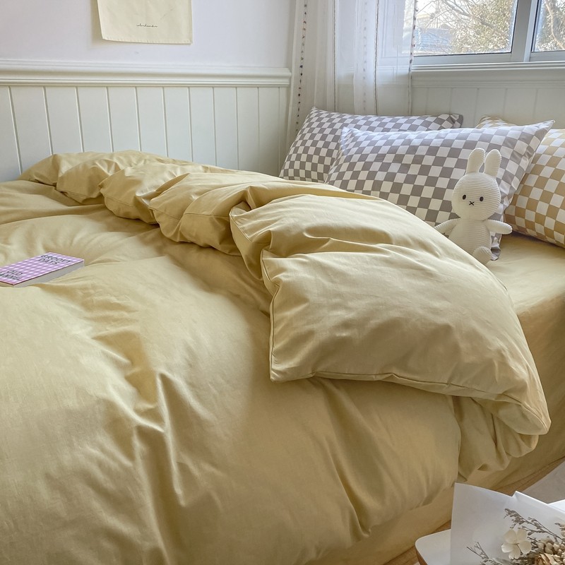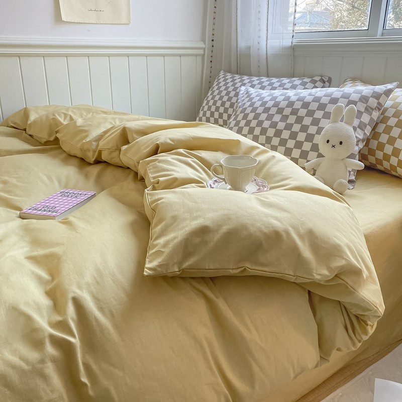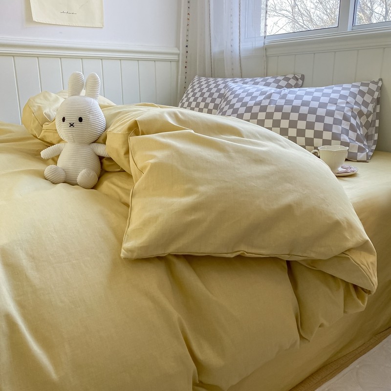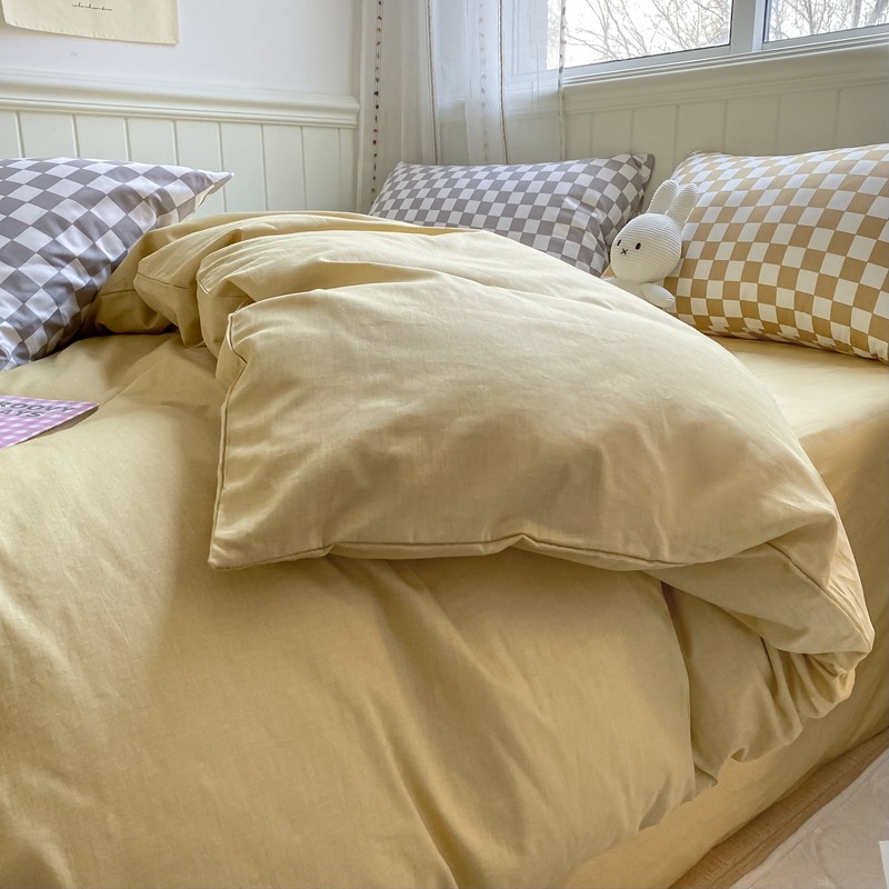 昔可2022新款混搭纯色棋盘格套件四件套 芒果黄驼棋盘