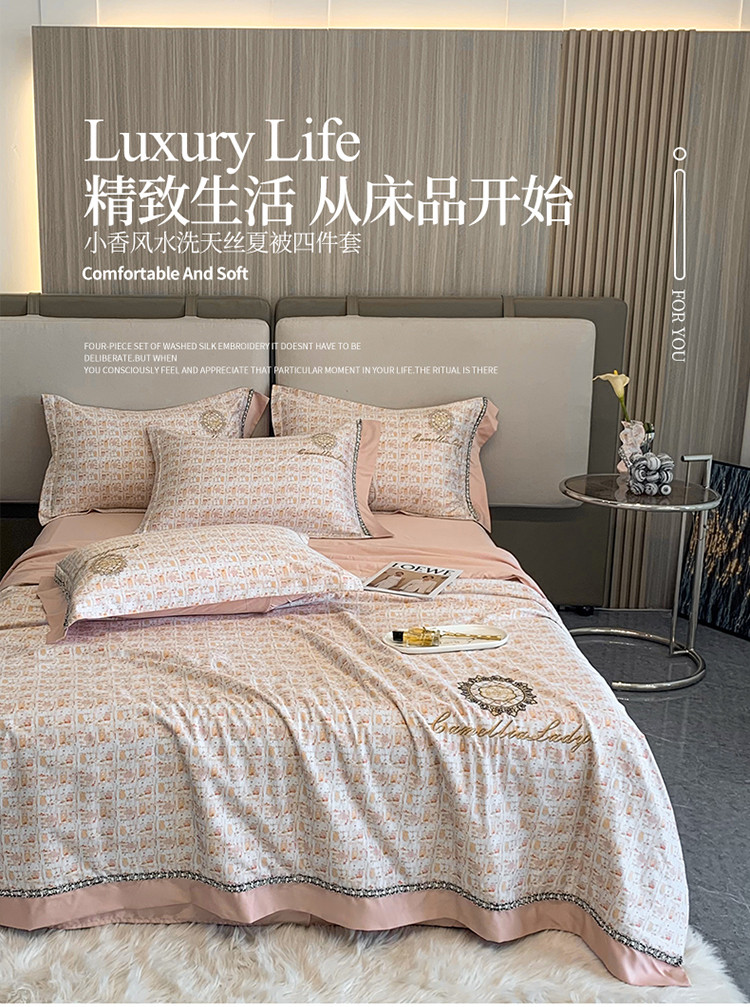 (总)澳洲羽 2024新款小香风刺绣夏被四件套