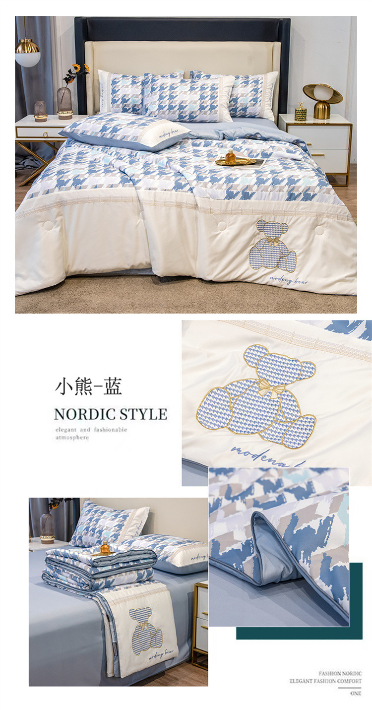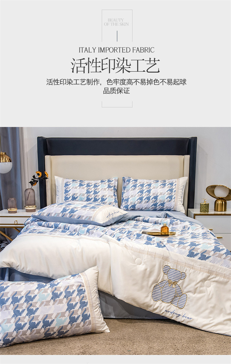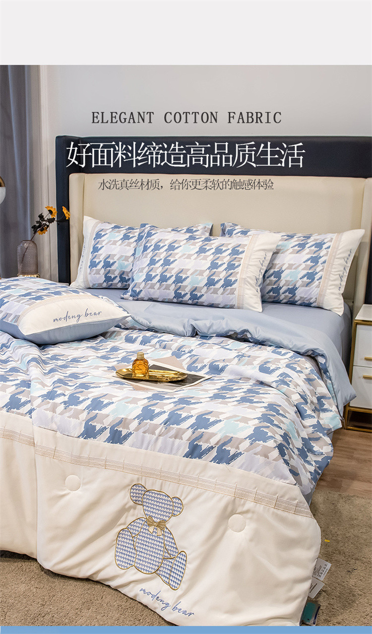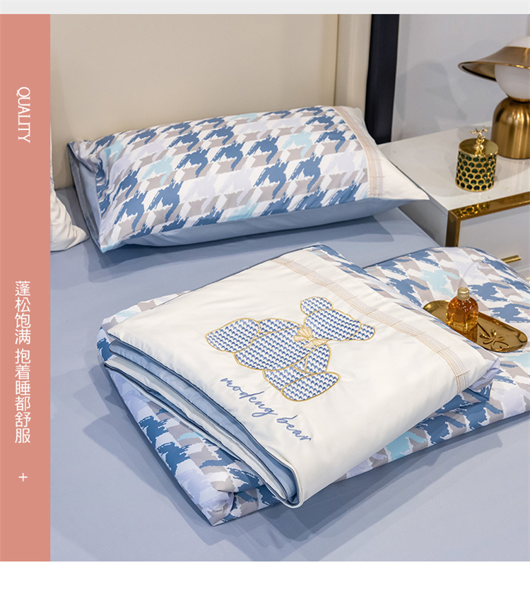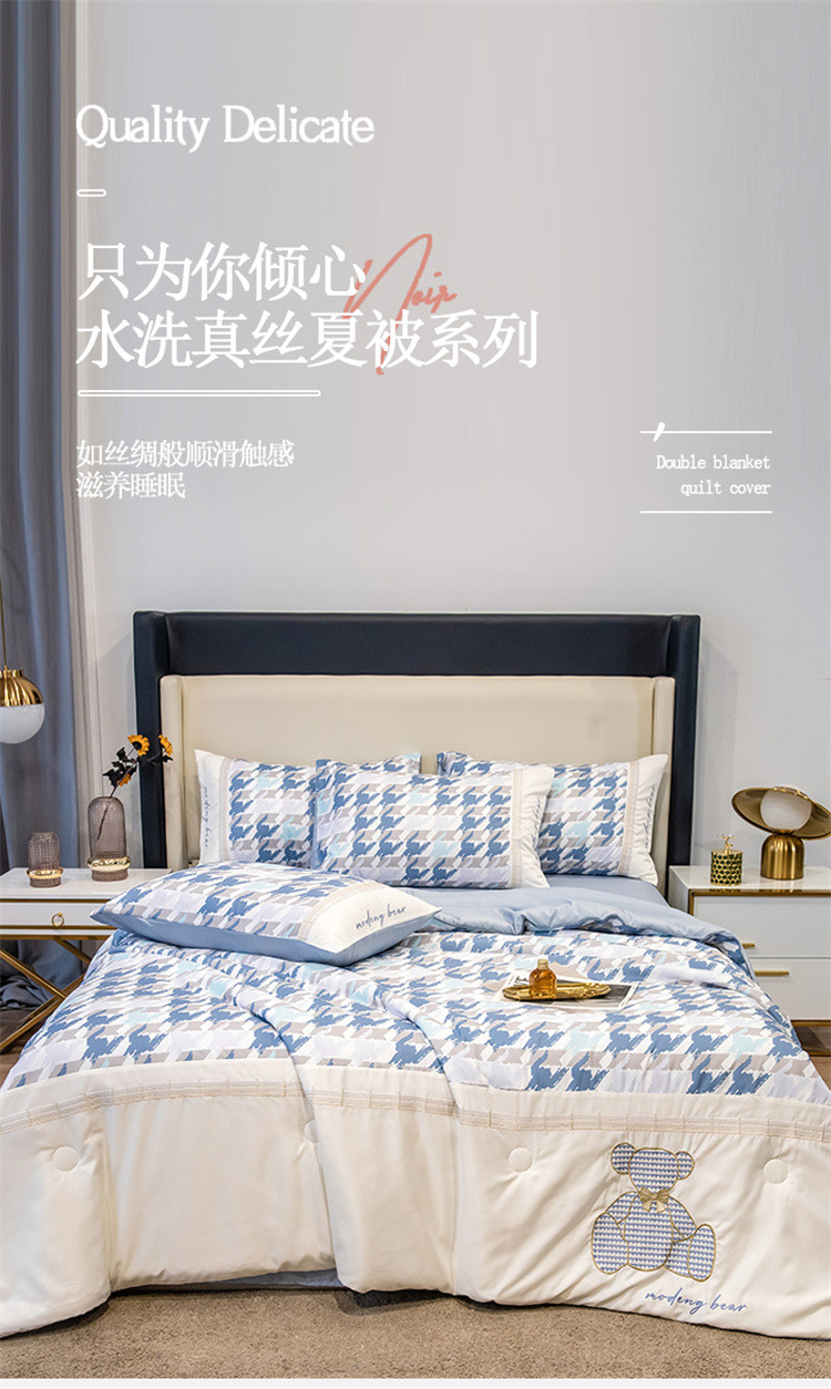 芃成家纺 2022新款水洗真丝夏被子被芯-刺绣熊 熊出没-蓝