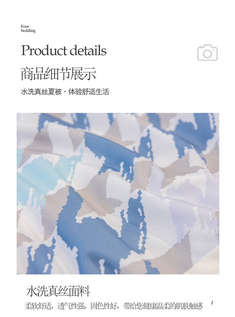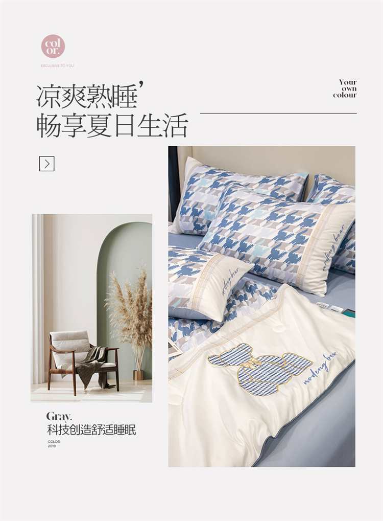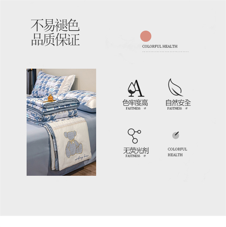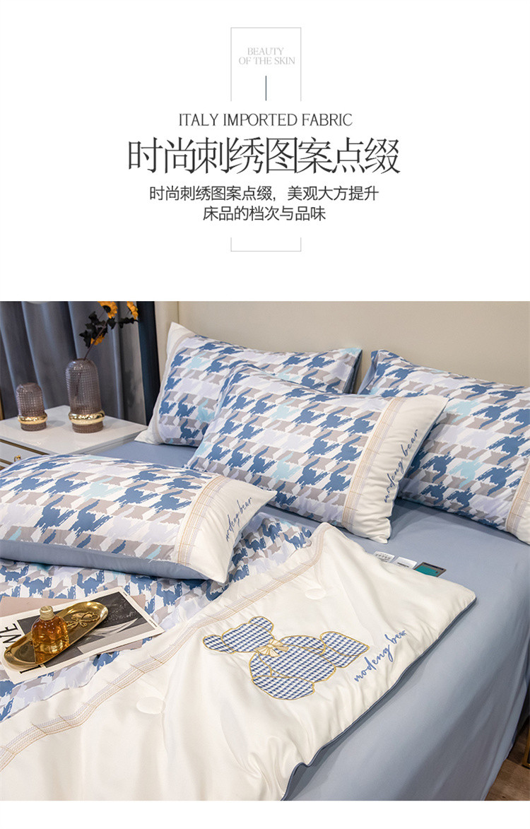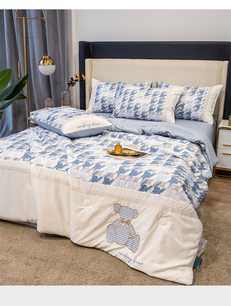 芃成家纺 2022新款水洗真丝夏被子被芯-刺绣熊 熊出没-蓝