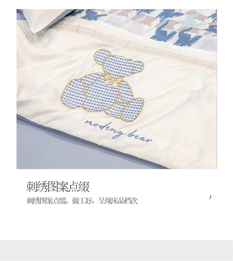 商品名称:芃成家纺 2022新款水洗真丝夏被子被芯-刺绣熊 熊出没-蓝