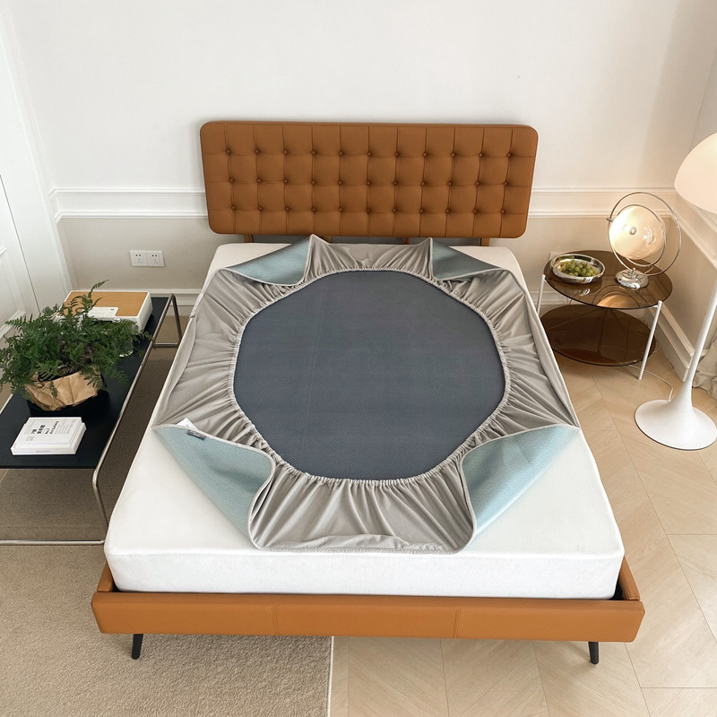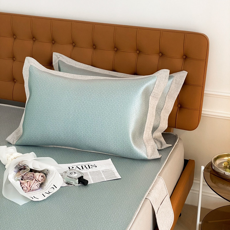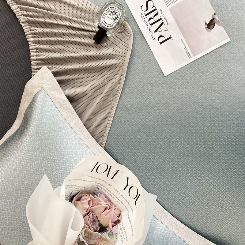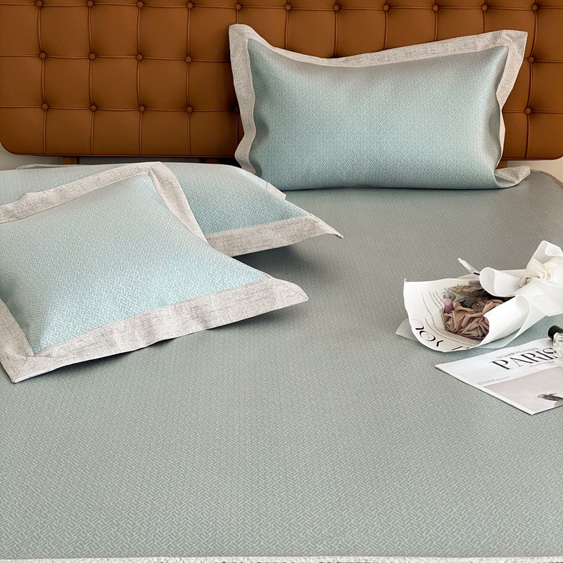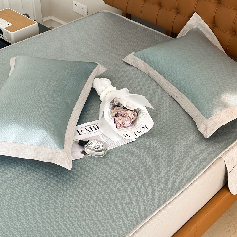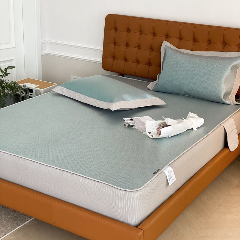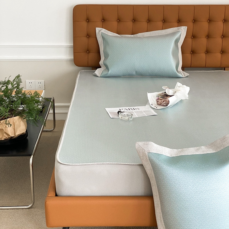 本希 2022新款高端床笠款水洗冰丝席-简约款 S纹-绿床笠款