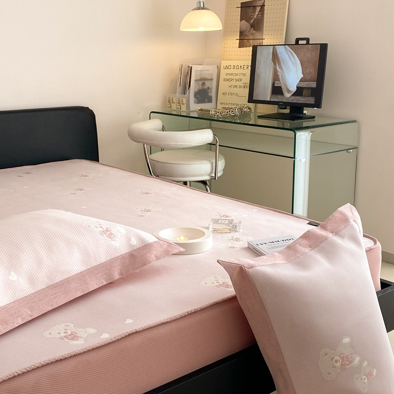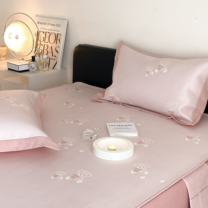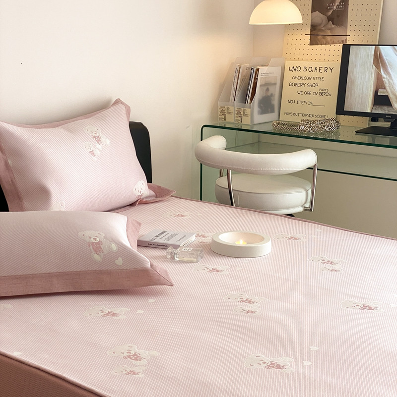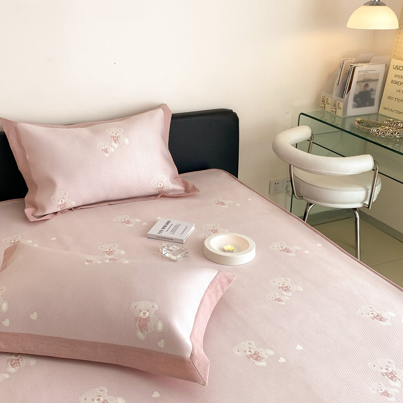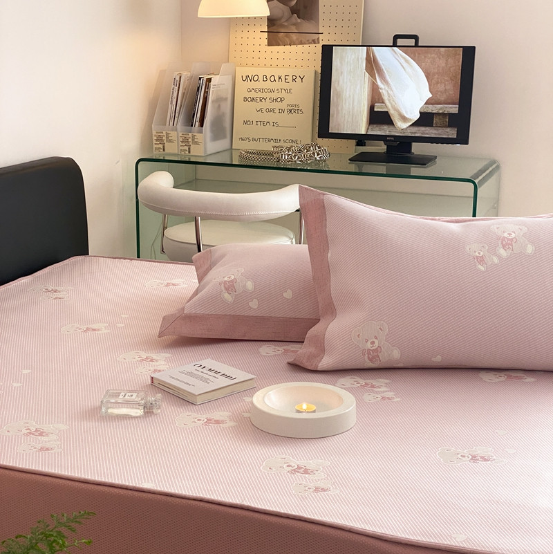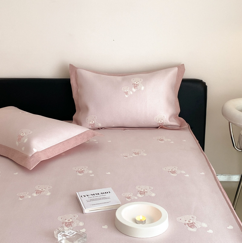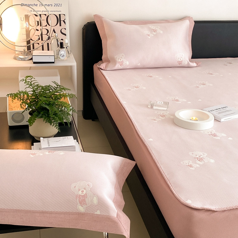 本希 2022新款高端床笠款水洗冰丝席-简约款 小熊-淡雅粉床笠款