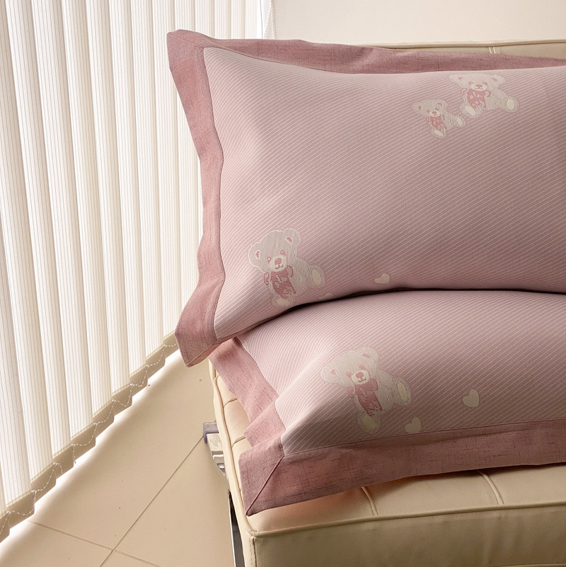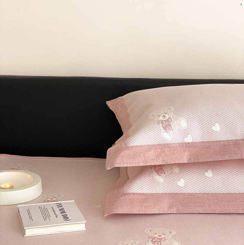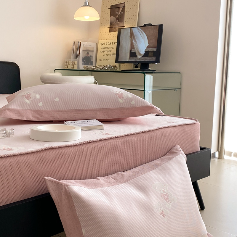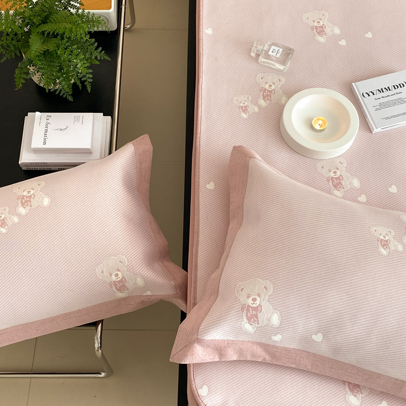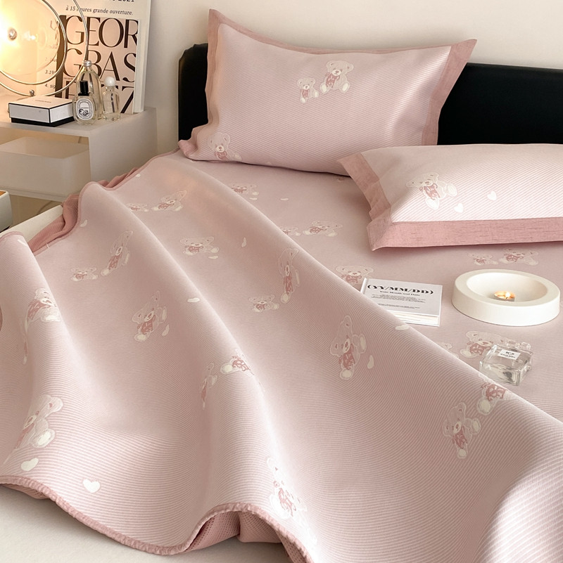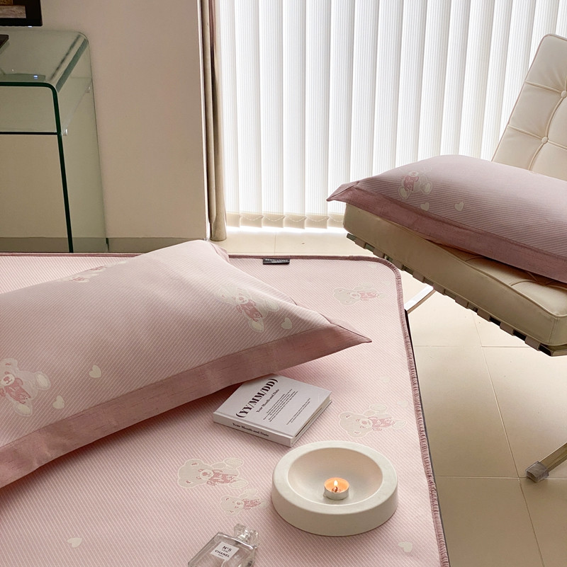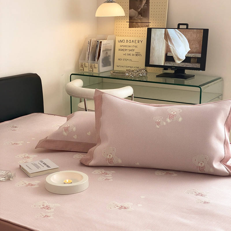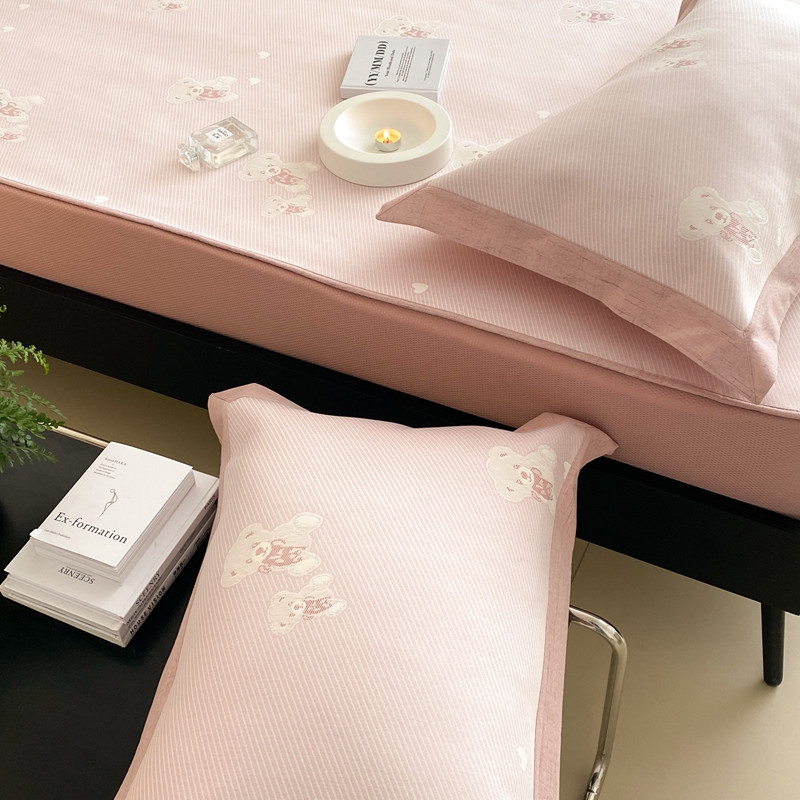 本希 2022新款高端床笠款水洗冰丝席-简约款 小熊-淡雅粉床笠款
