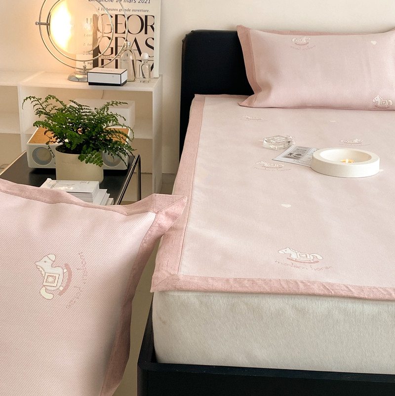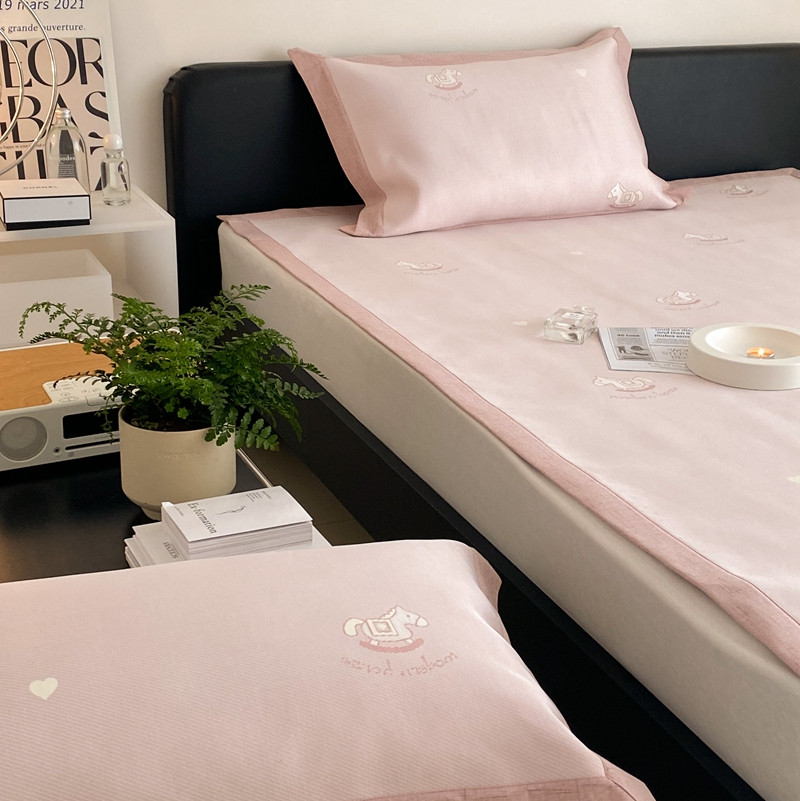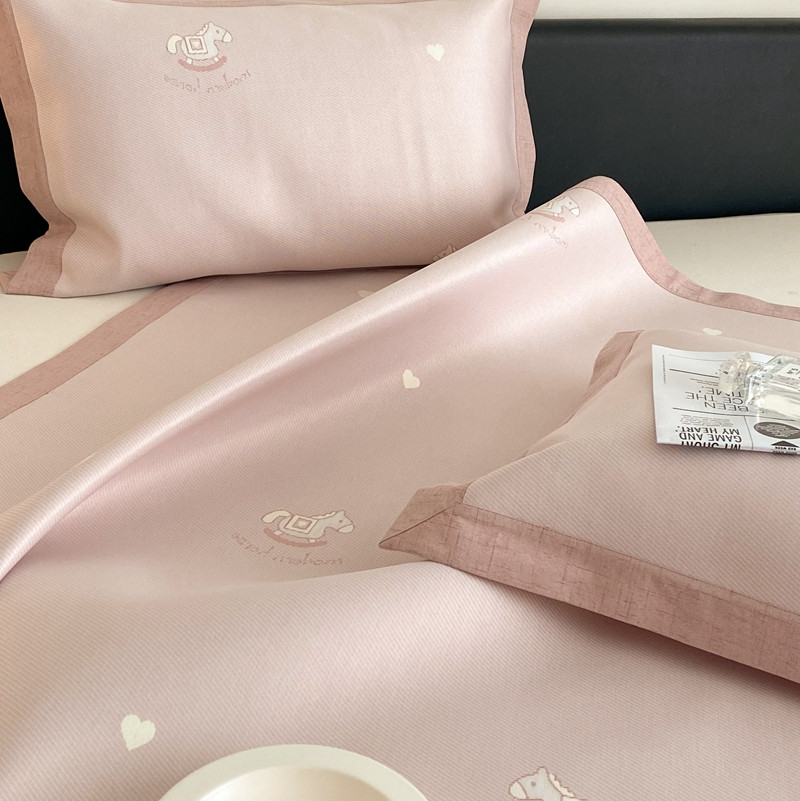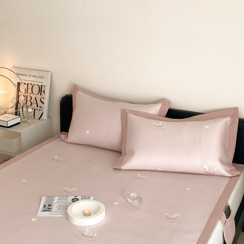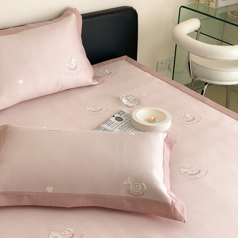 商品名称:本希 2022新款高端床席款水洗冰丝席-简约款 小马-淡雅粉床席款