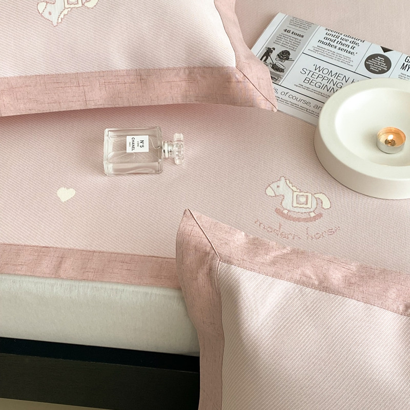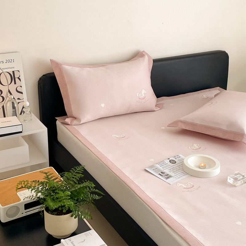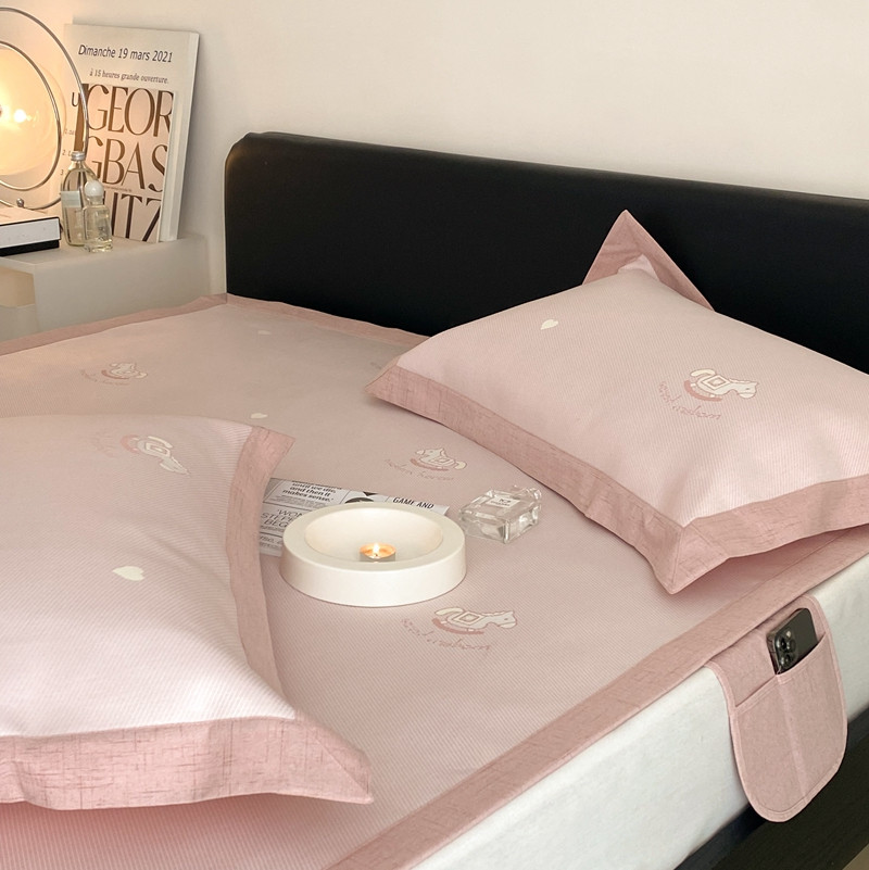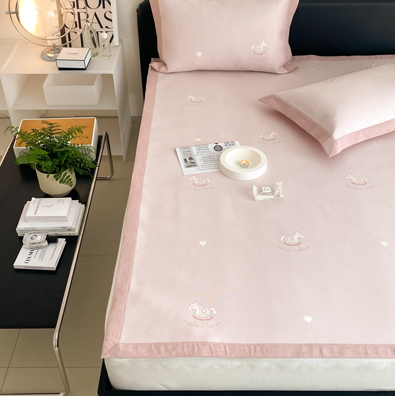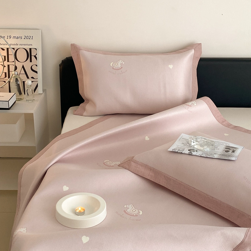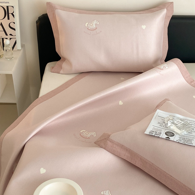 商品名称:本希 2022新款高端床席款水洗冰丝席-简约款 小马-淡雅粉床席款