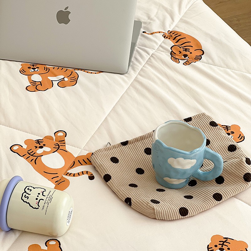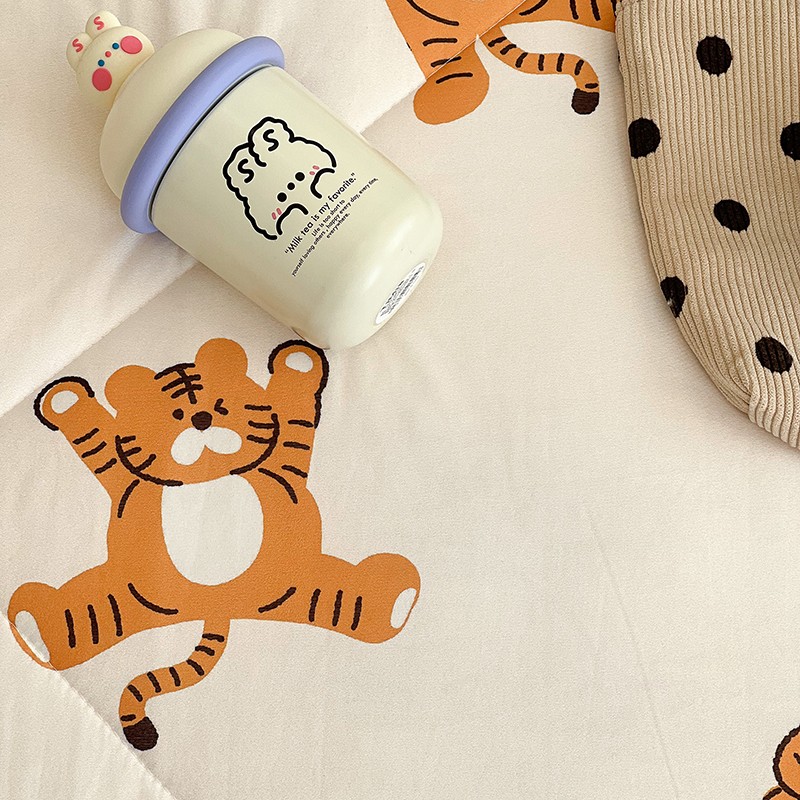 昔可 2022新款卡通印花牛奶丝针织夏被 小顽皮-白