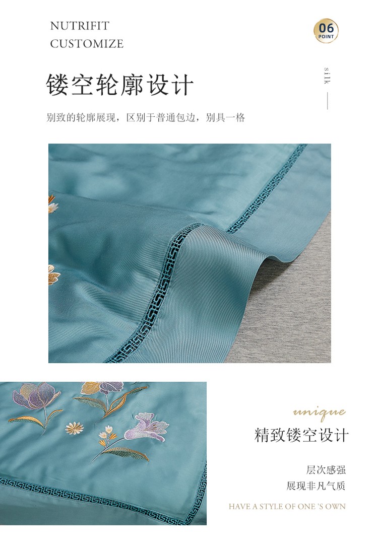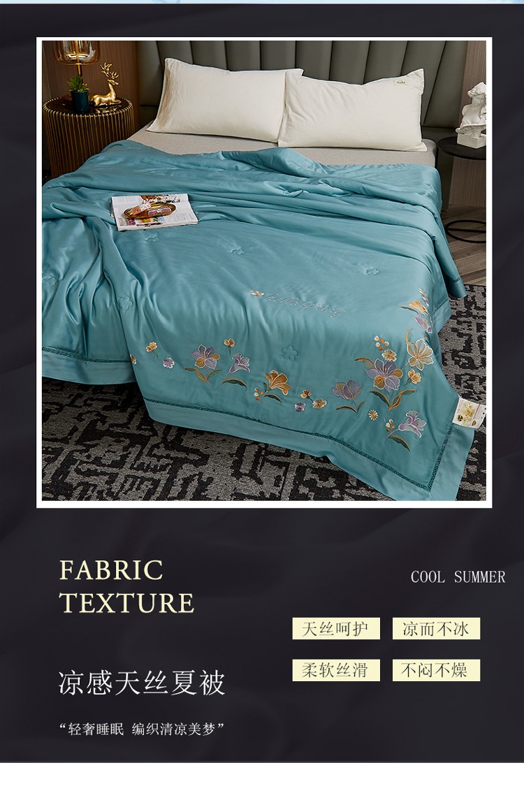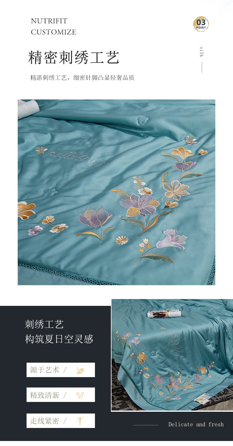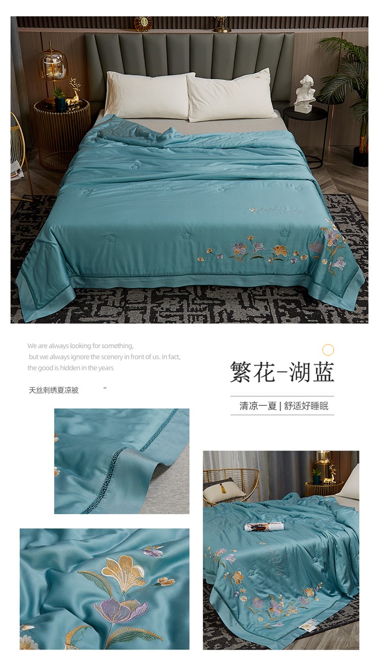 商品名称:暖阳 2023新款天丝镂空刺绣夏凉被 繁花-湖蓝