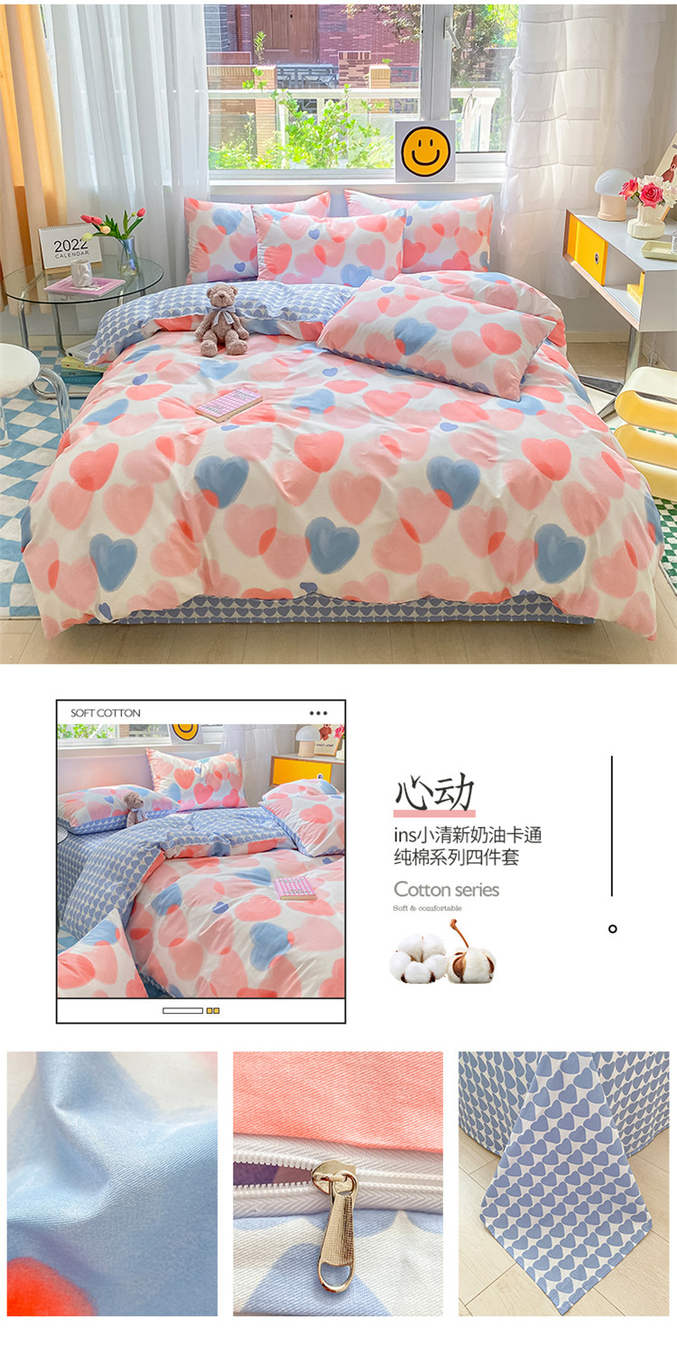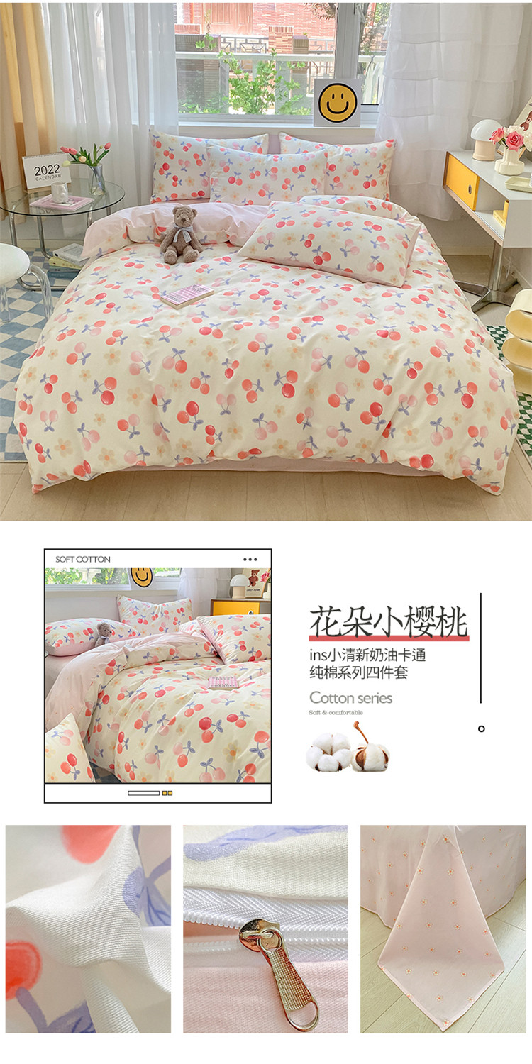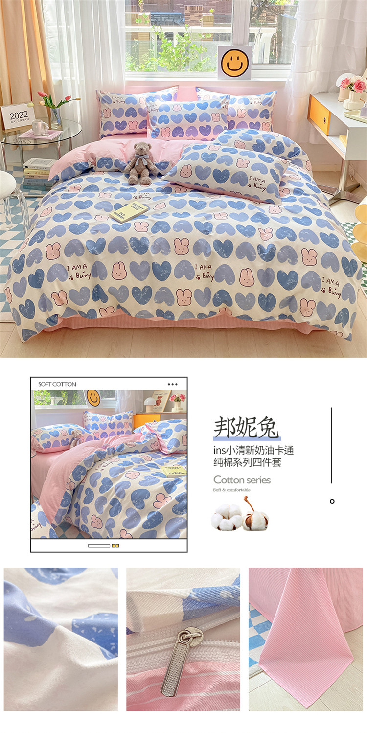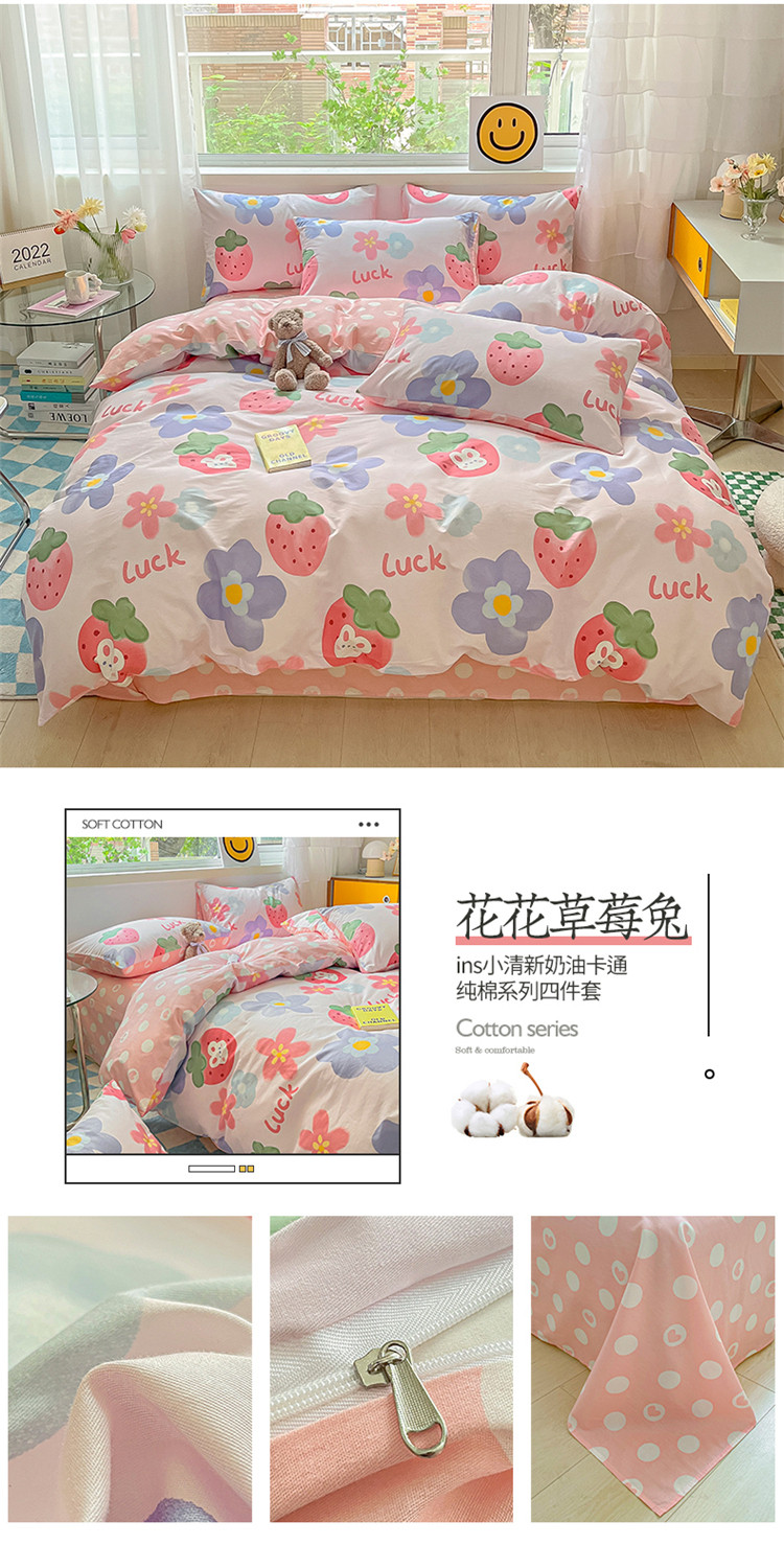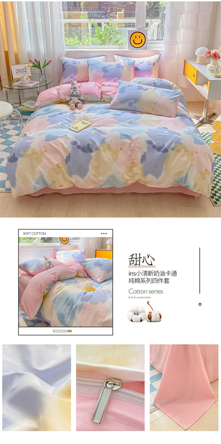 (总)桃子家居2022新款ins小清新奶油卡通纯棉系列四件套