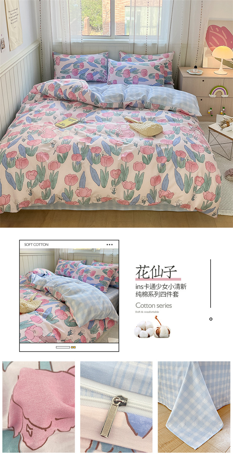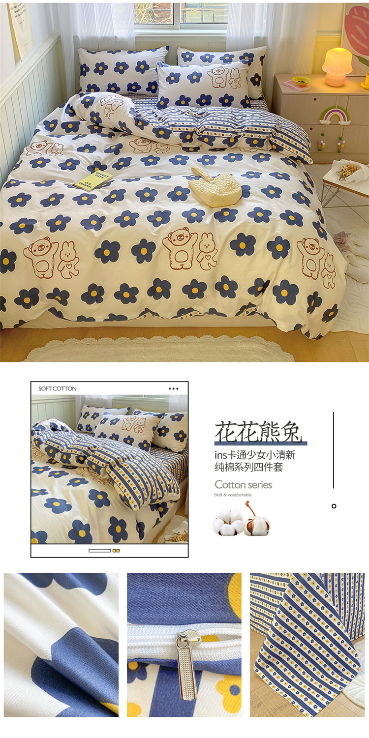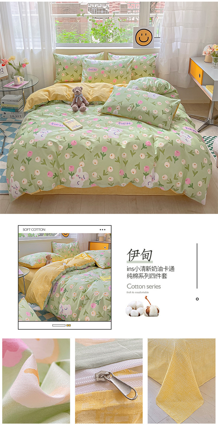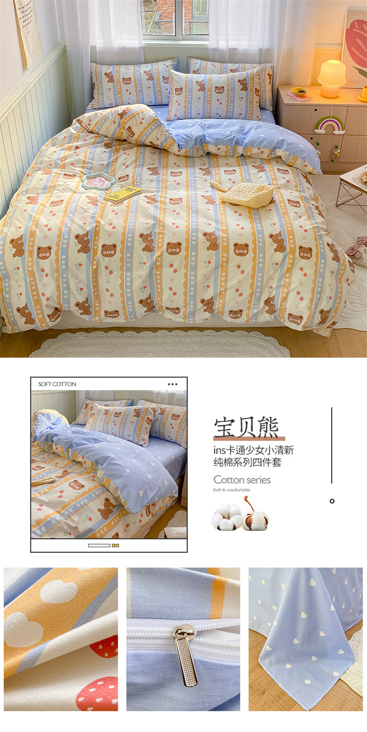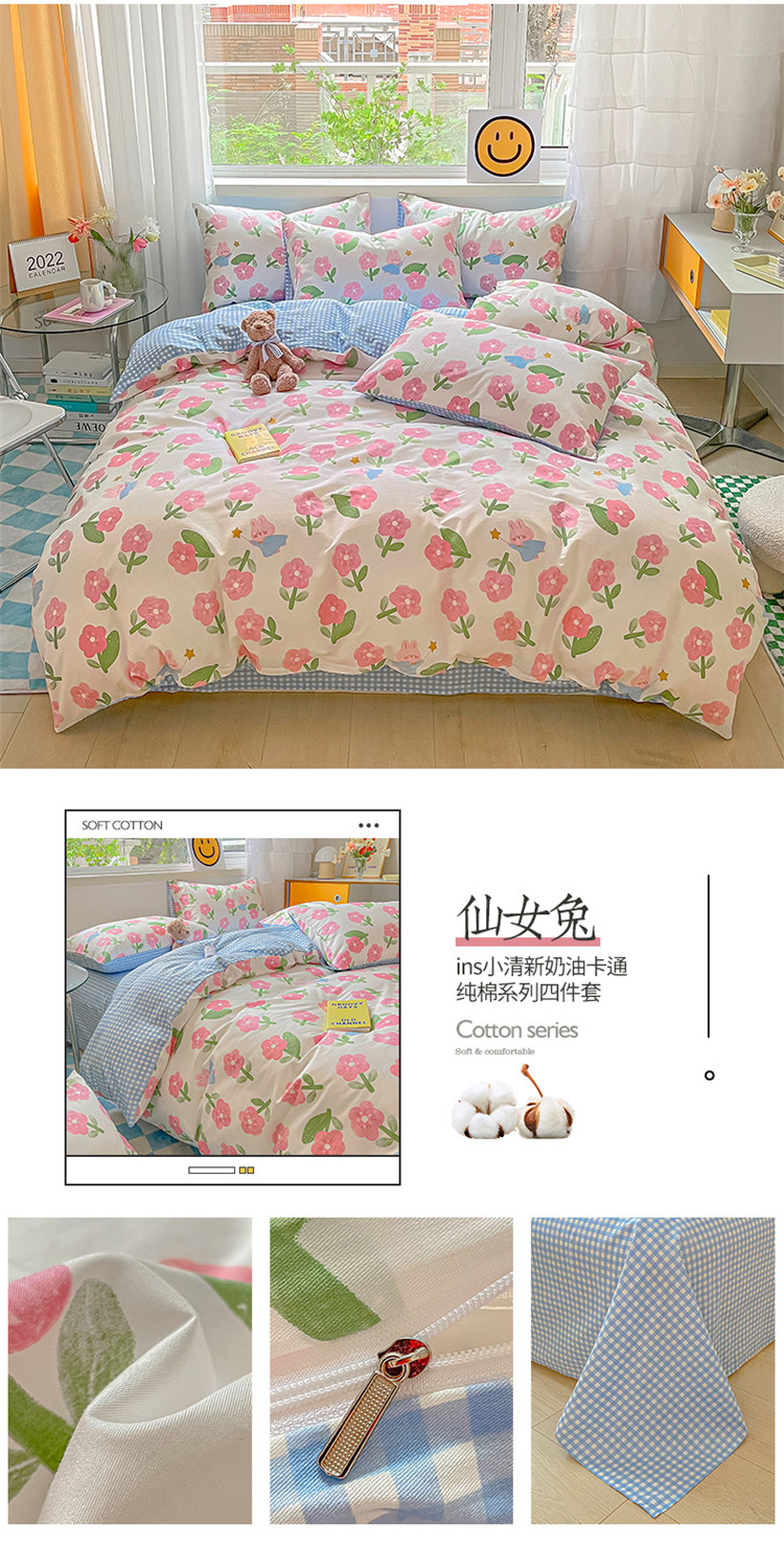 (总)桃子家居2022新款ins小清新奶油卡通纯棉系列四件套