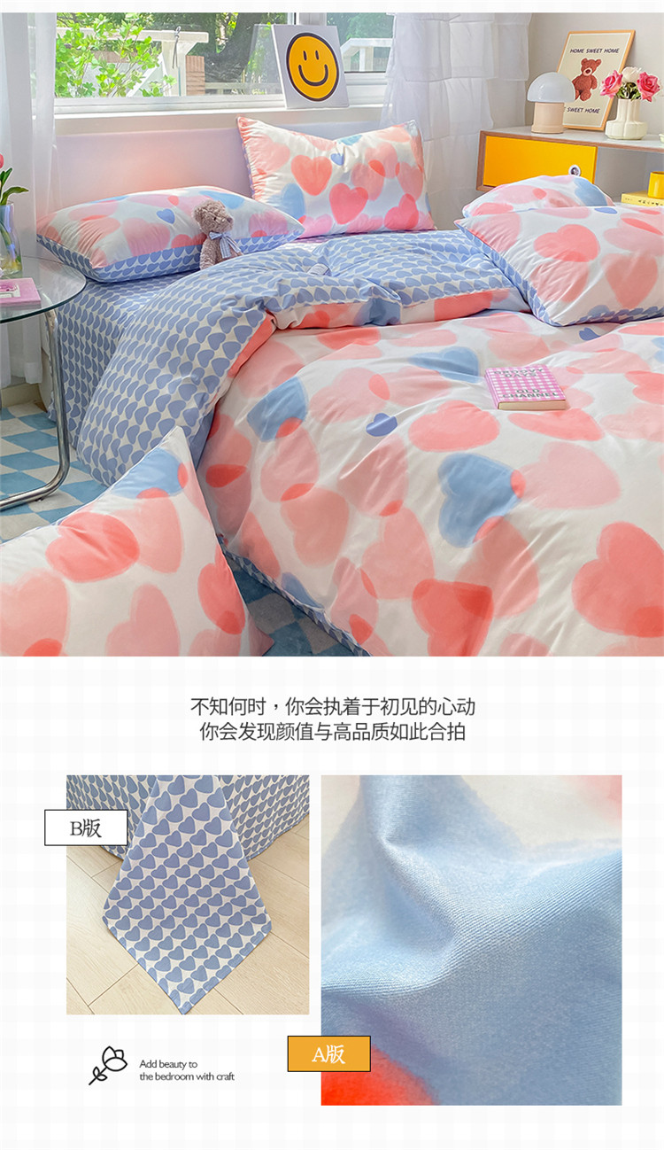 商品名称:桃子家居 2022新款ins小清新奶油卡通纯棉系列四件套 心动