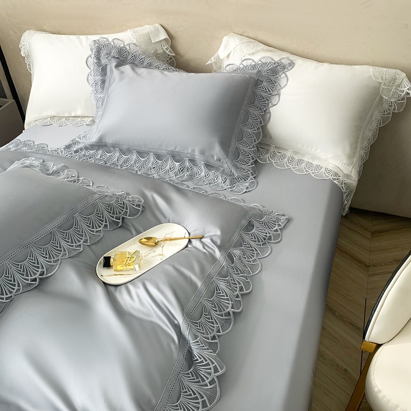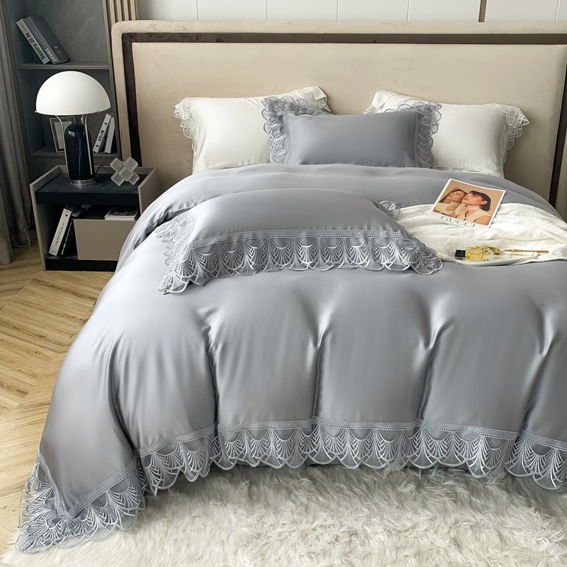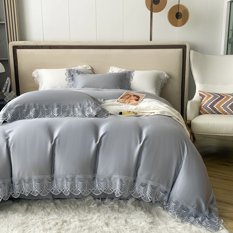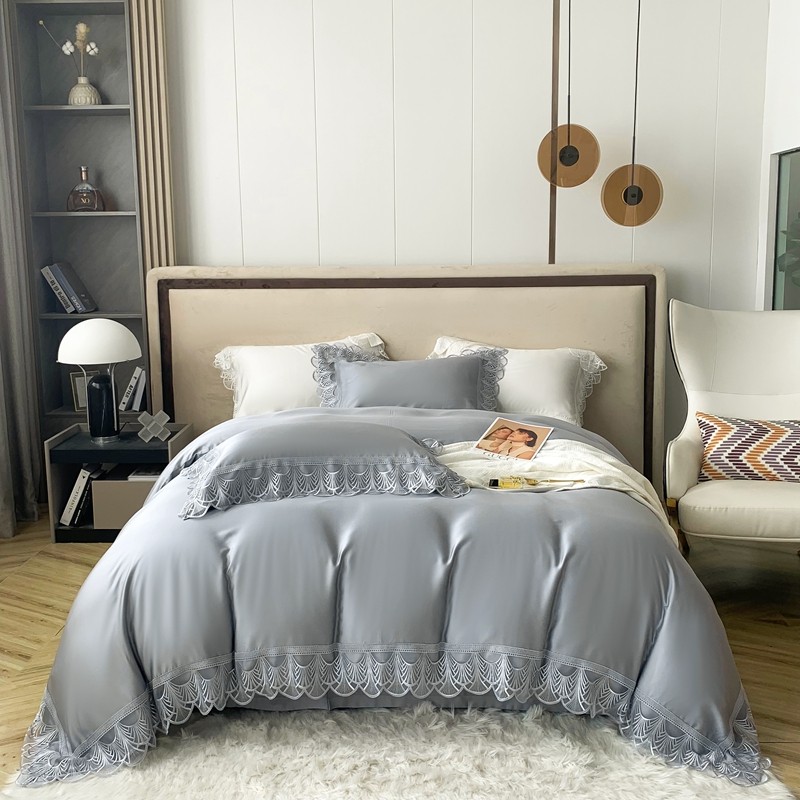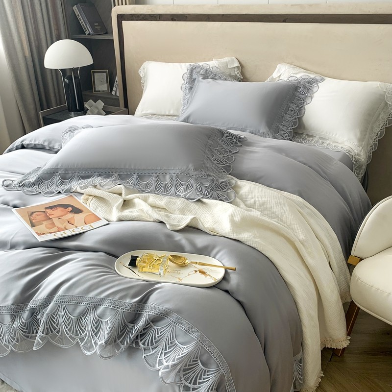 商品名称:榻尚 2023LF80奥地利天丝四件套精致蕾丝花边款 悦-绅士灰