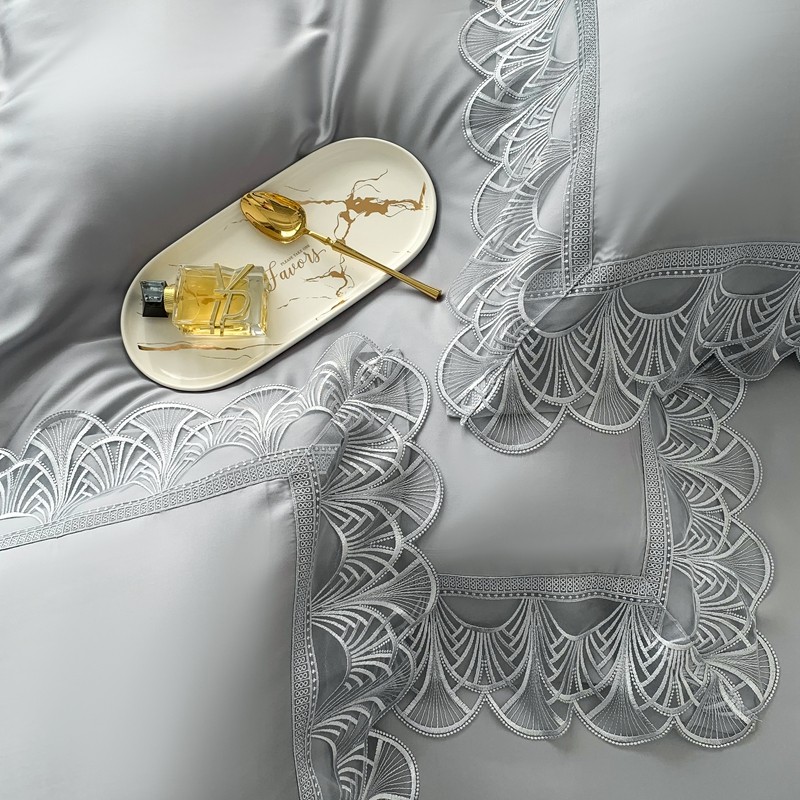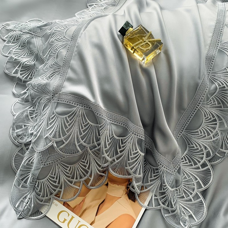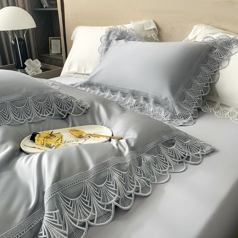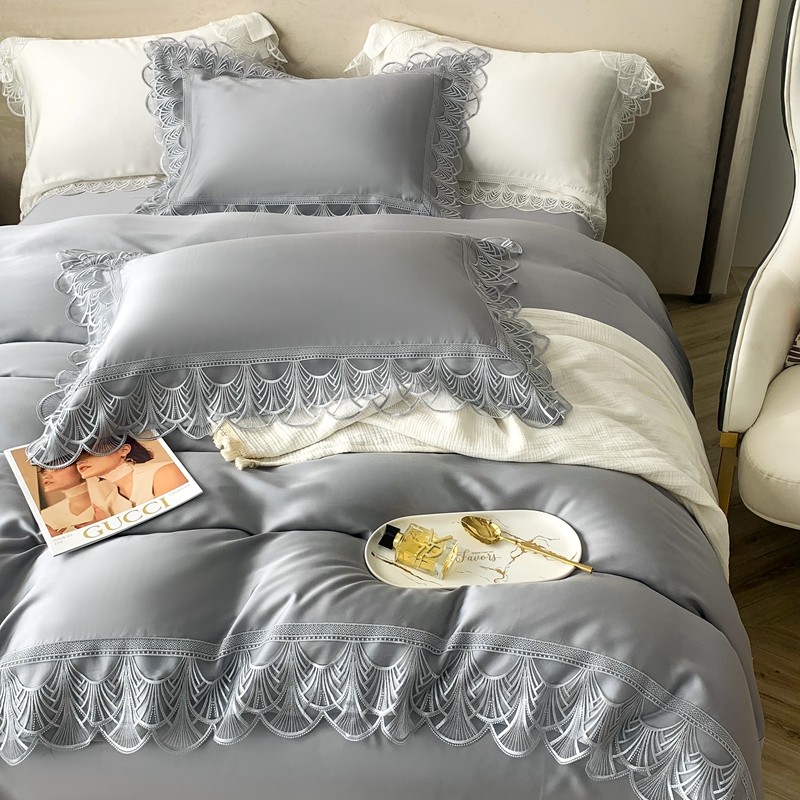 榻尚 2023LF80奥地利天丝四件套精致蕾丝花边款 悦-绅士灰