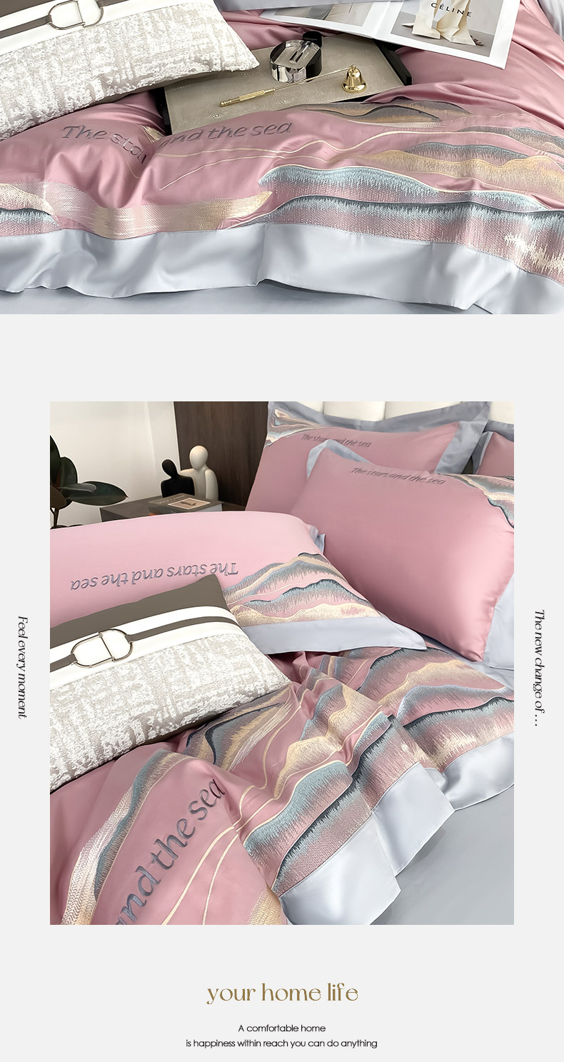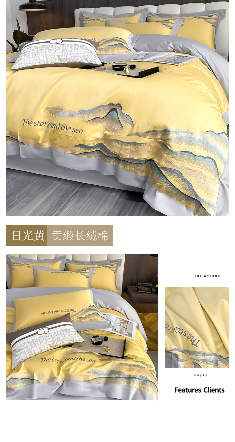 当前位置: 91家纺网 > 商品网购 > 床品套件 > 四件套 > 全棉普通四件套 > 【暖冬爆款】100支长绒棉全棉四件套纯棉山水画刺绣拼接床笠款