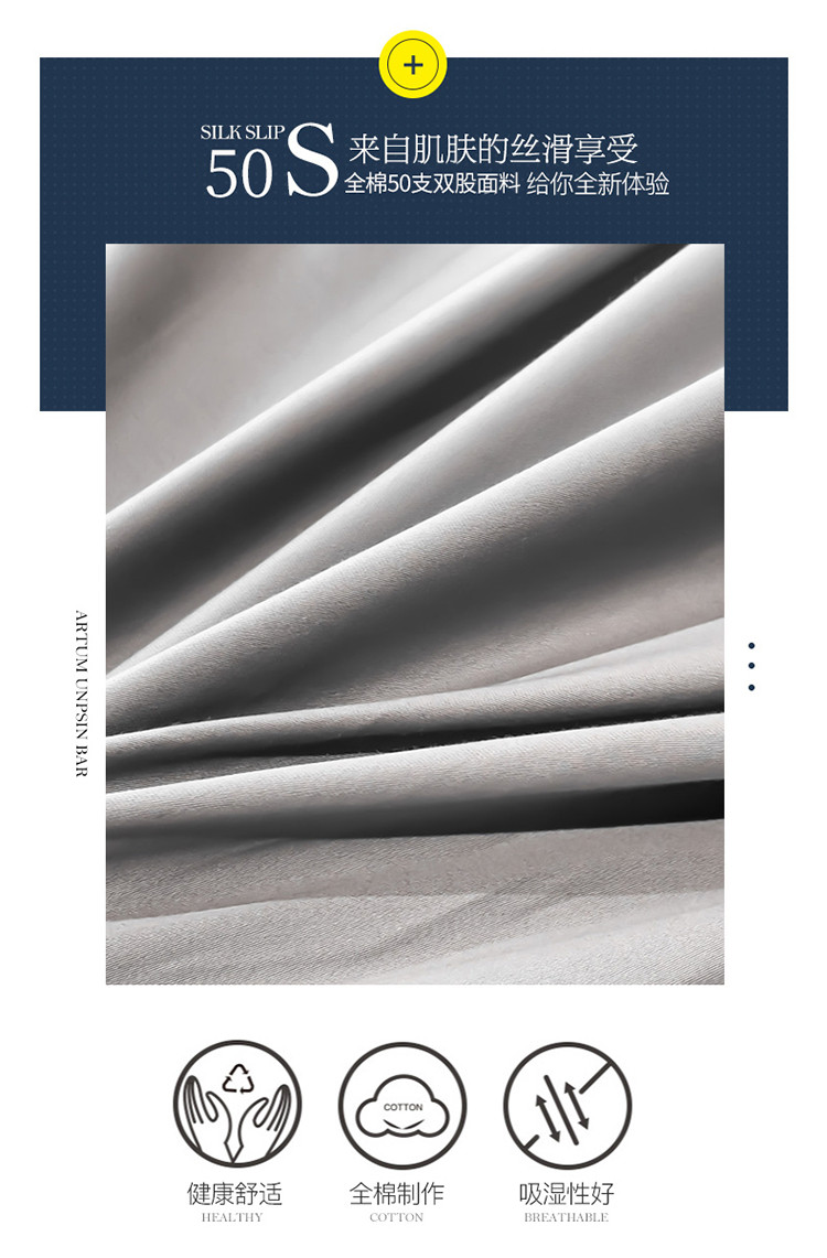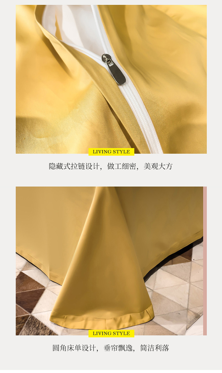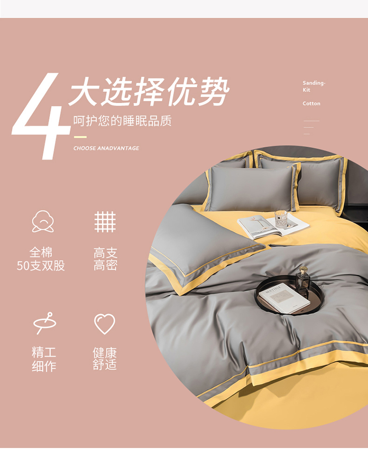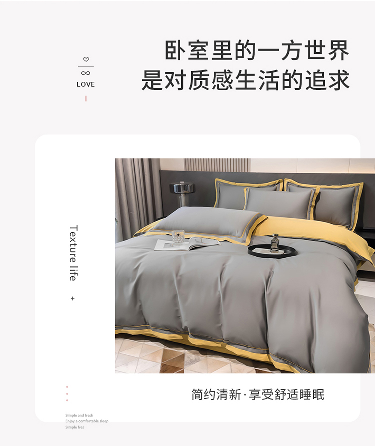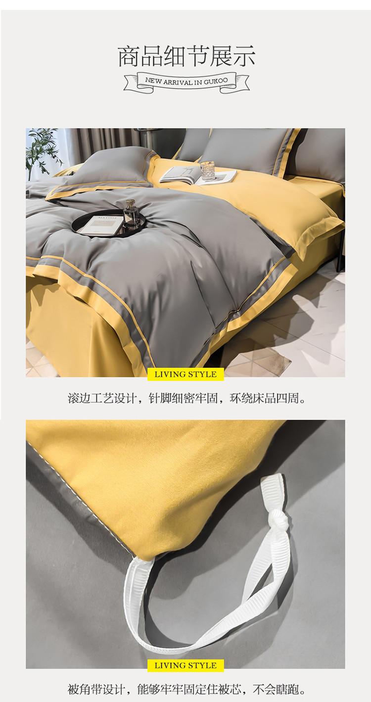 商品名称:好阁 2023新款100支长绒棉双股全棉极简双拼四件套 灰黄