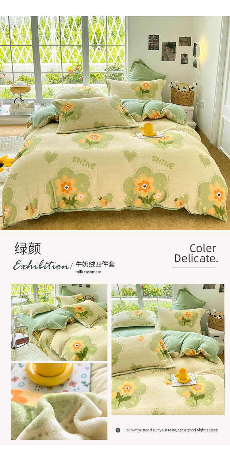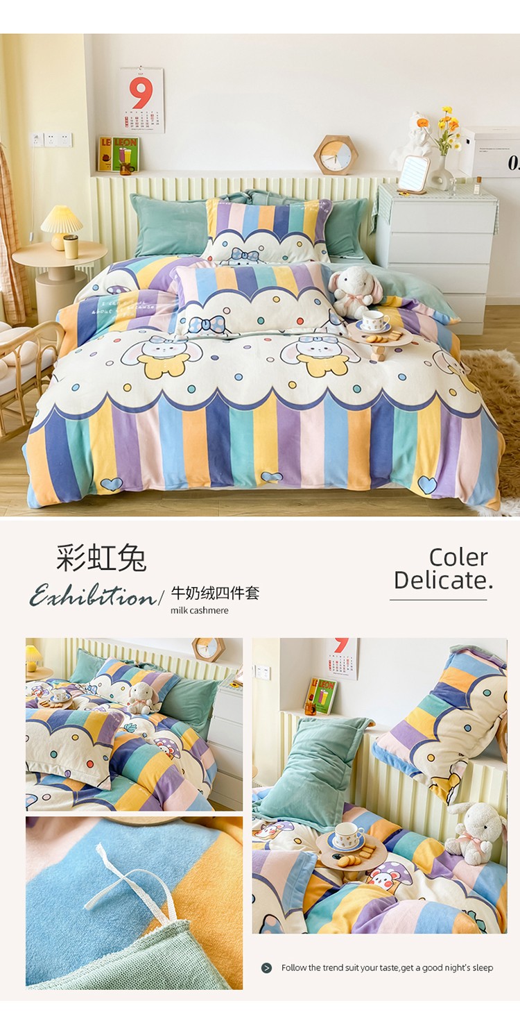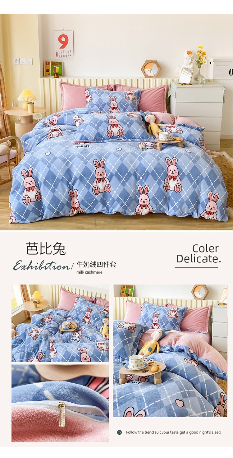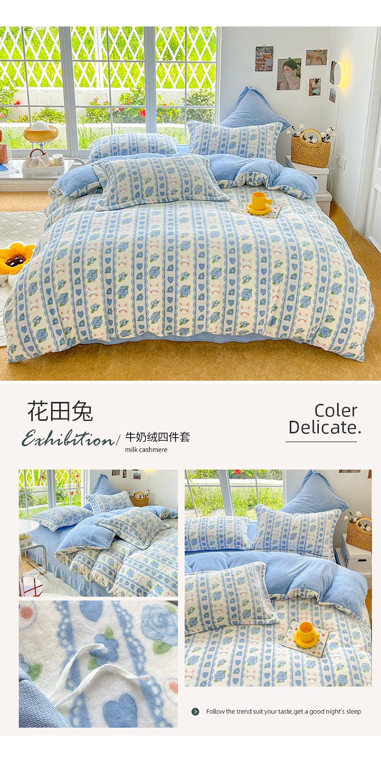 (总)呗旺鹿 2025新款卡通棉+绒牛奶绒棉绒四件套,心意满满,快乐魔法,闹钟麦田