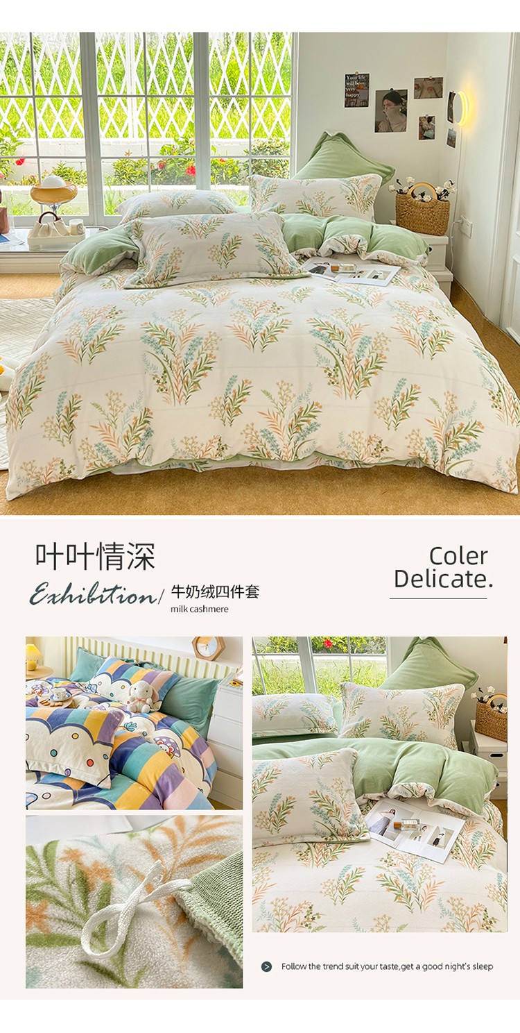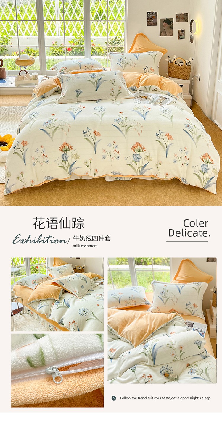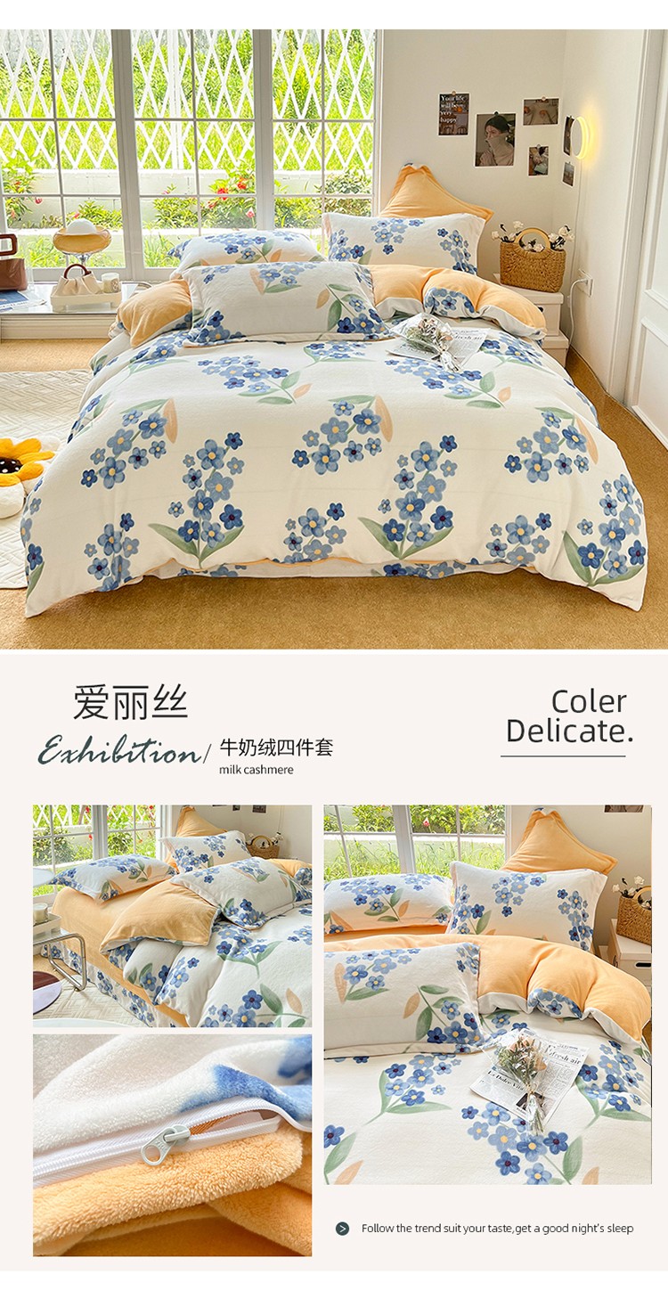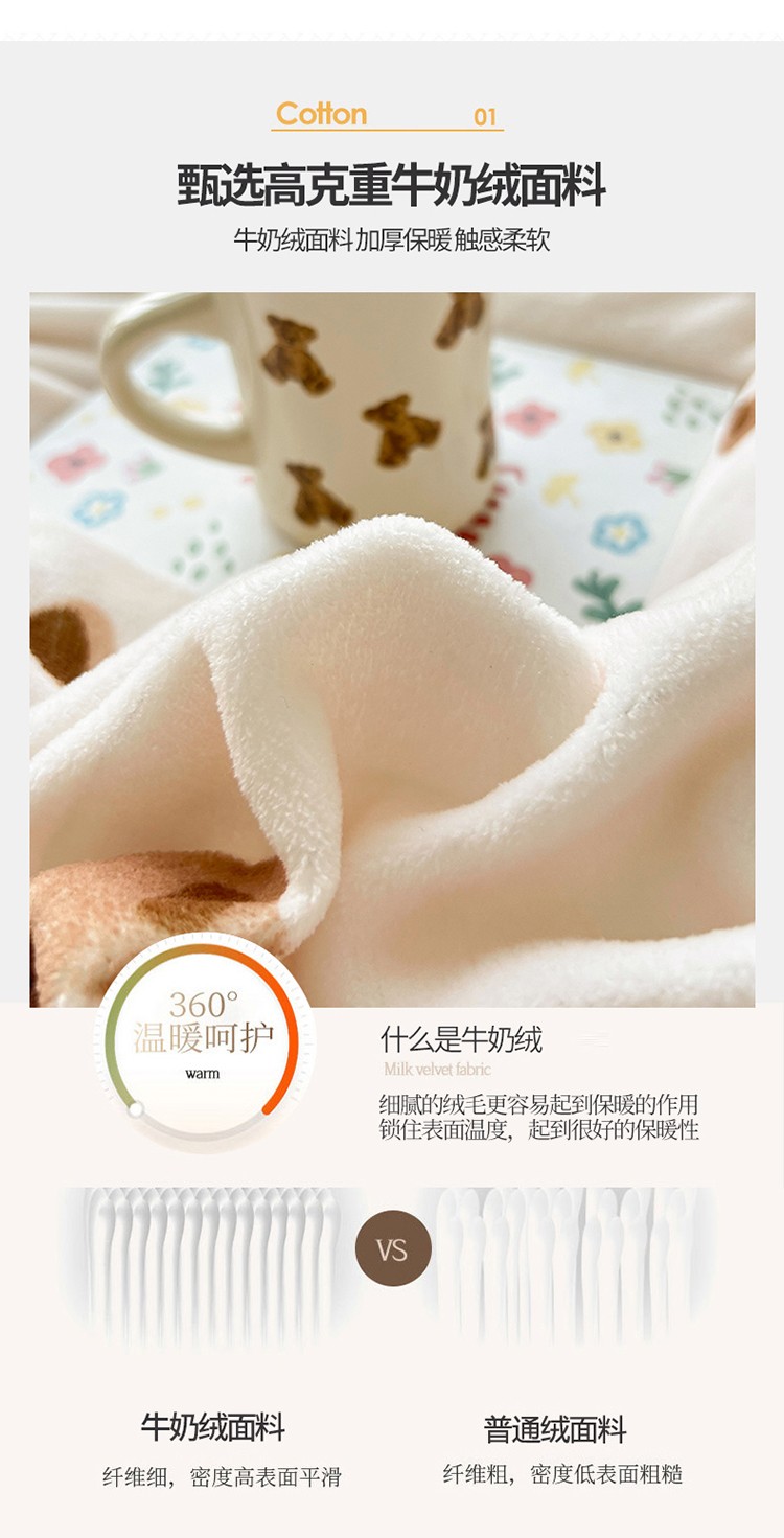 总 呗旺鹿2022高克重ykk拉链印花小清新牛奶绒四件套直播