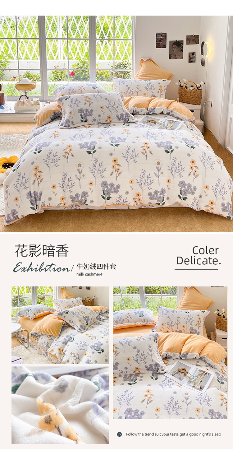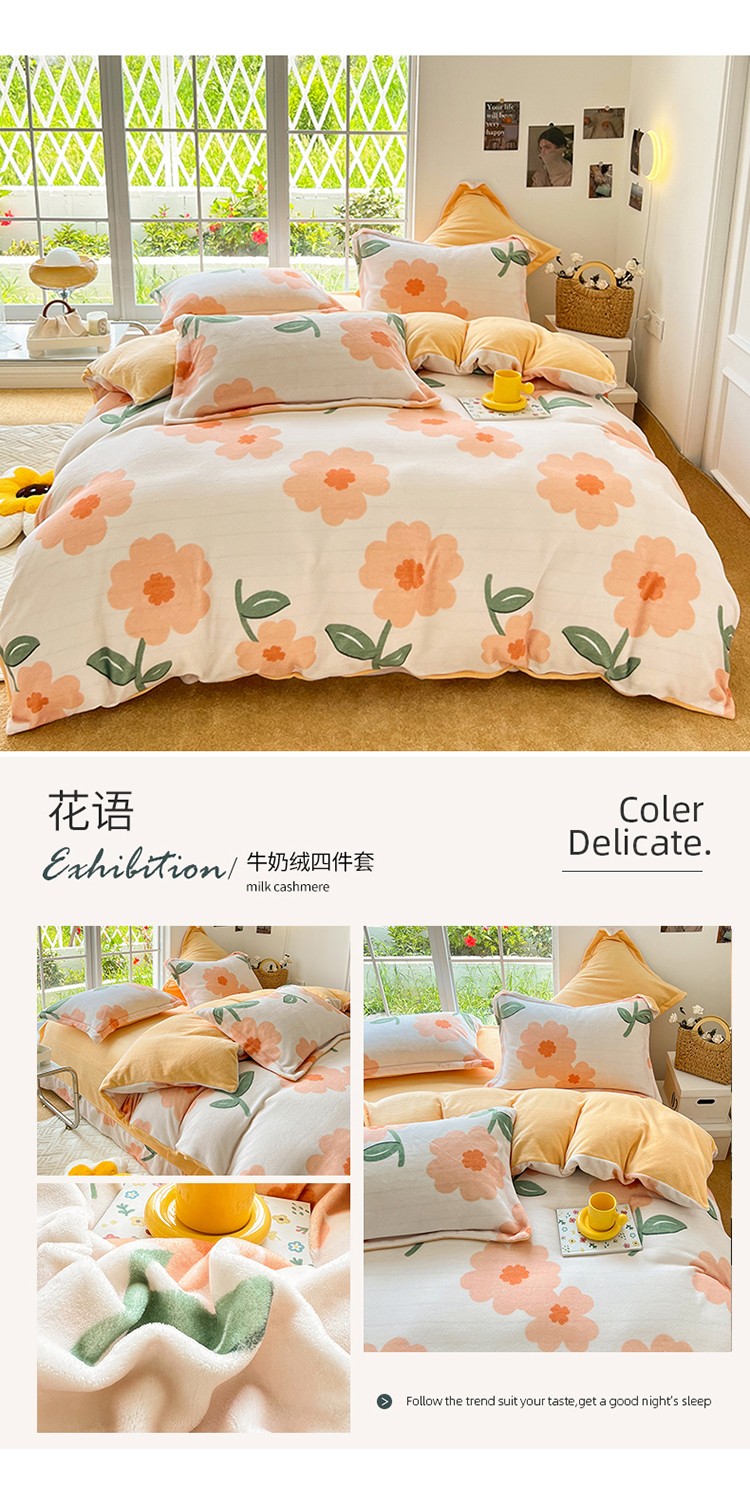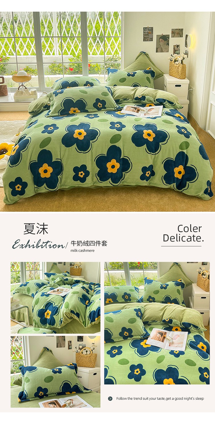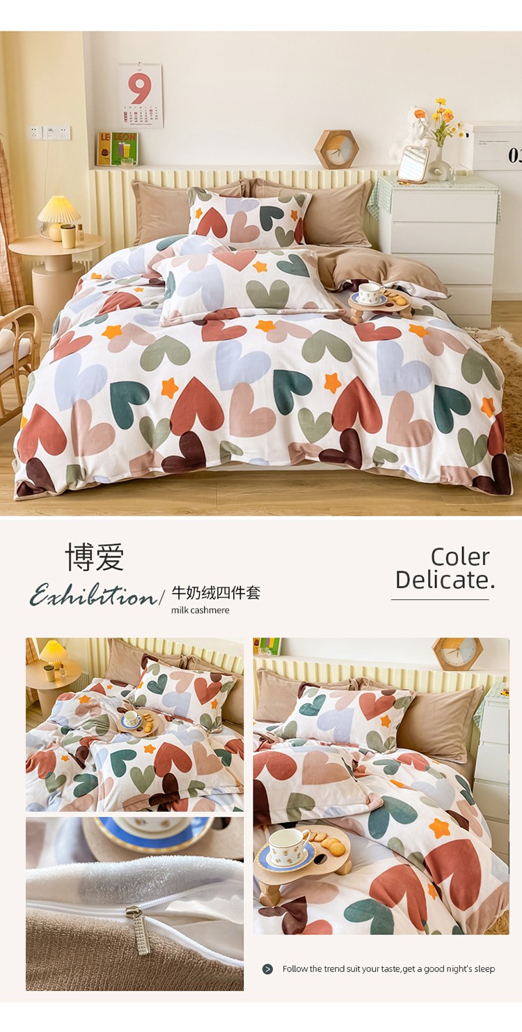 总 呗旺鹿2022高克重ykk拉链印花小清新牛奶绒四件套直播