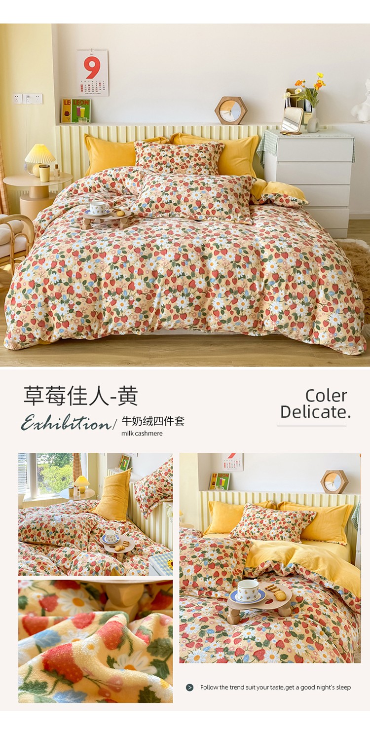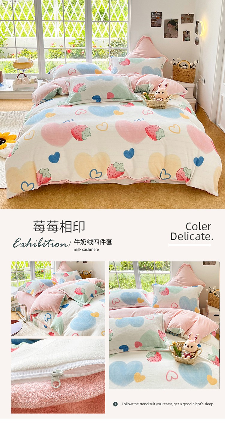 (总)呗旺鹿 2025新款亲肤舒适ins韩系撞色小清新牛奶绒四件套,海洋芝士-枕套粉色+格子,海洋芝士-枕套粉+粉,巧克力草莓酱-枕套蓝色+格子,巧克力草莓酱-枕套蓝色+蓝色,芝士草莓点点-枕套咖+粉格,芝士草莓点点-枕套咖+咖,芝士焦糖-枕套焦糖+格子,芝士焦糖-枕套焦糖+焦糖