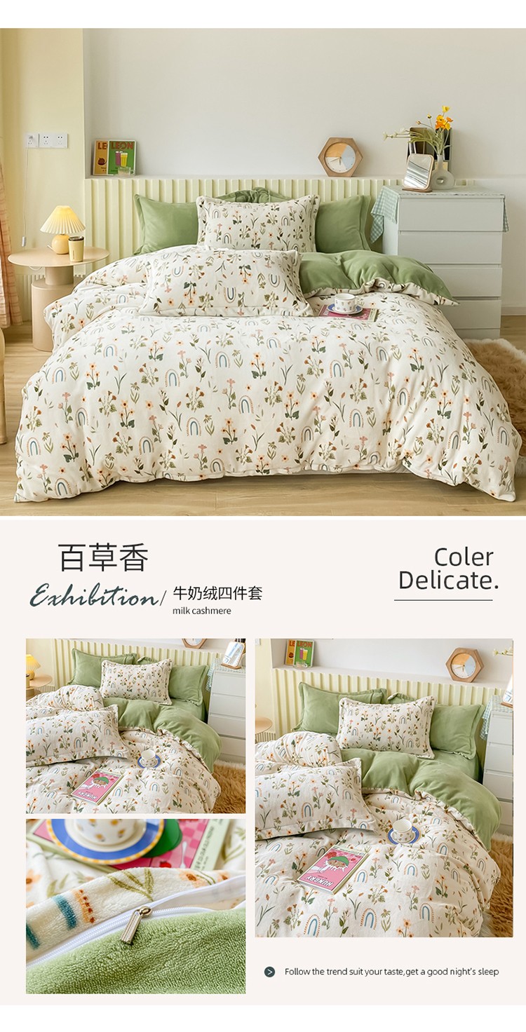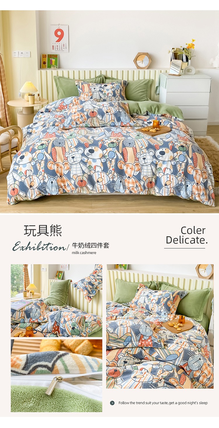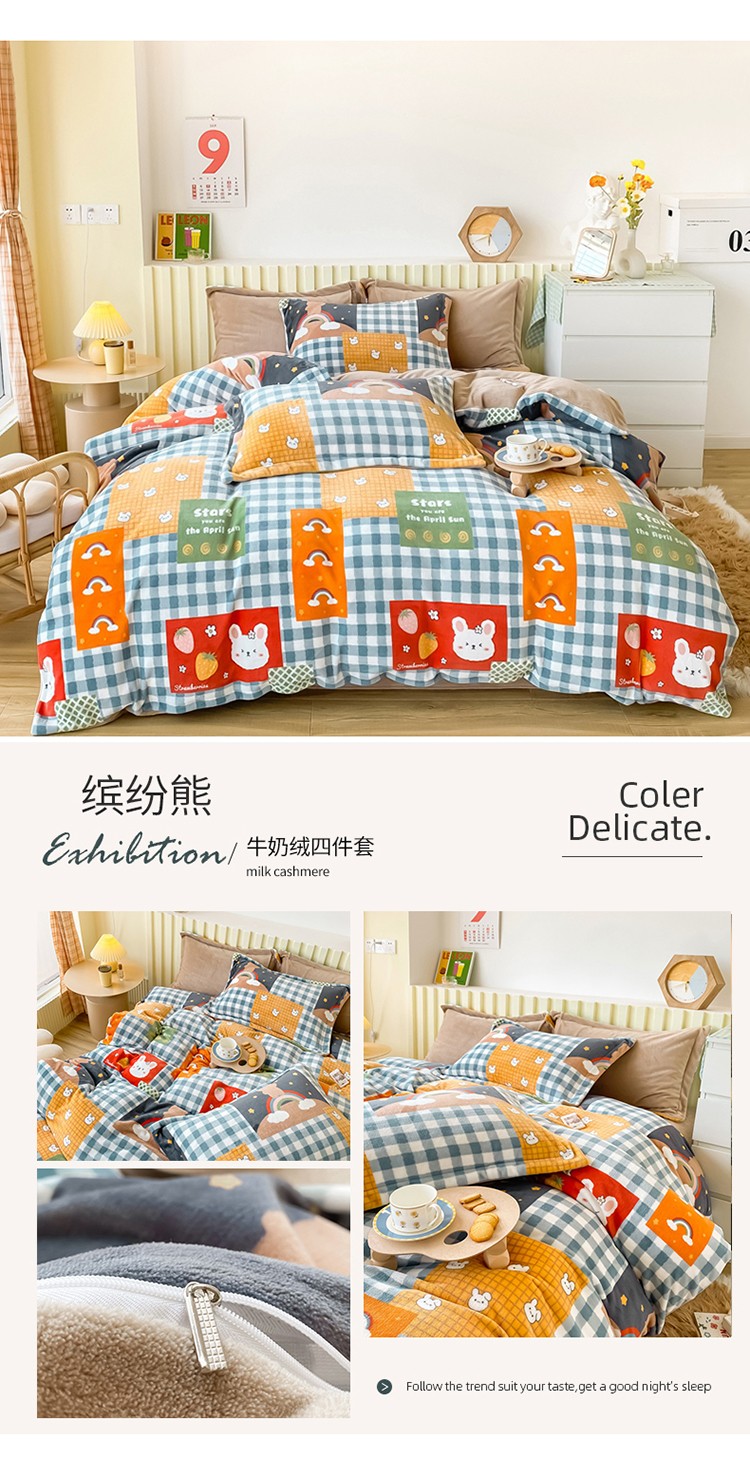 商品名称:总 呗旺鹿2022高克重ykk拉链印花小清新牛奶绒四件套直播