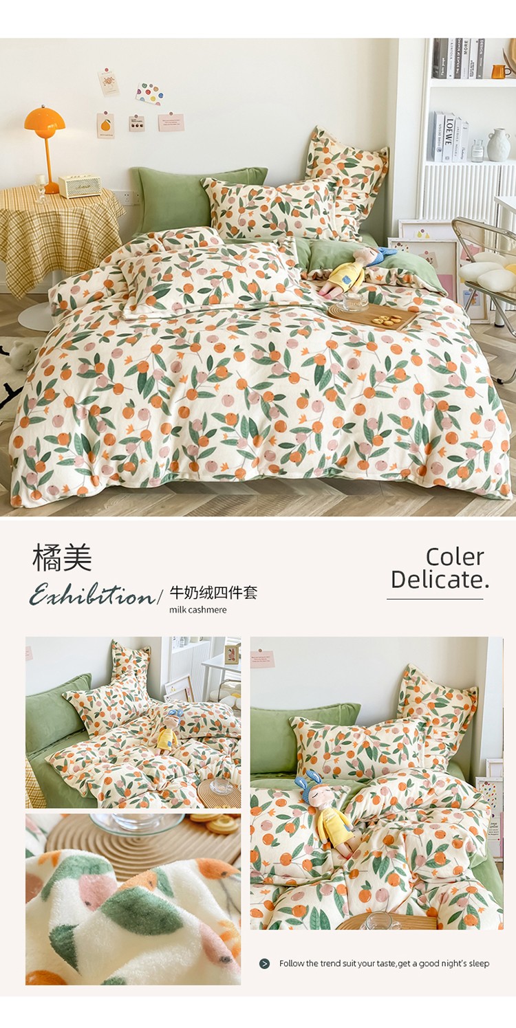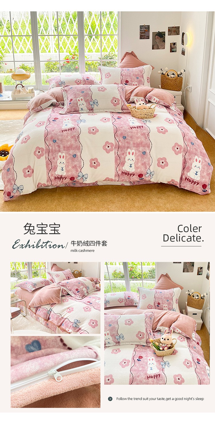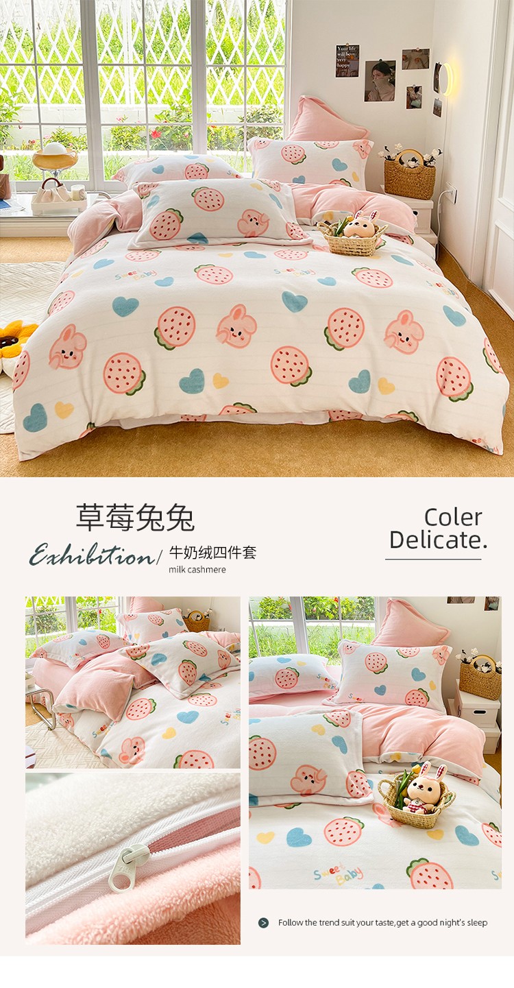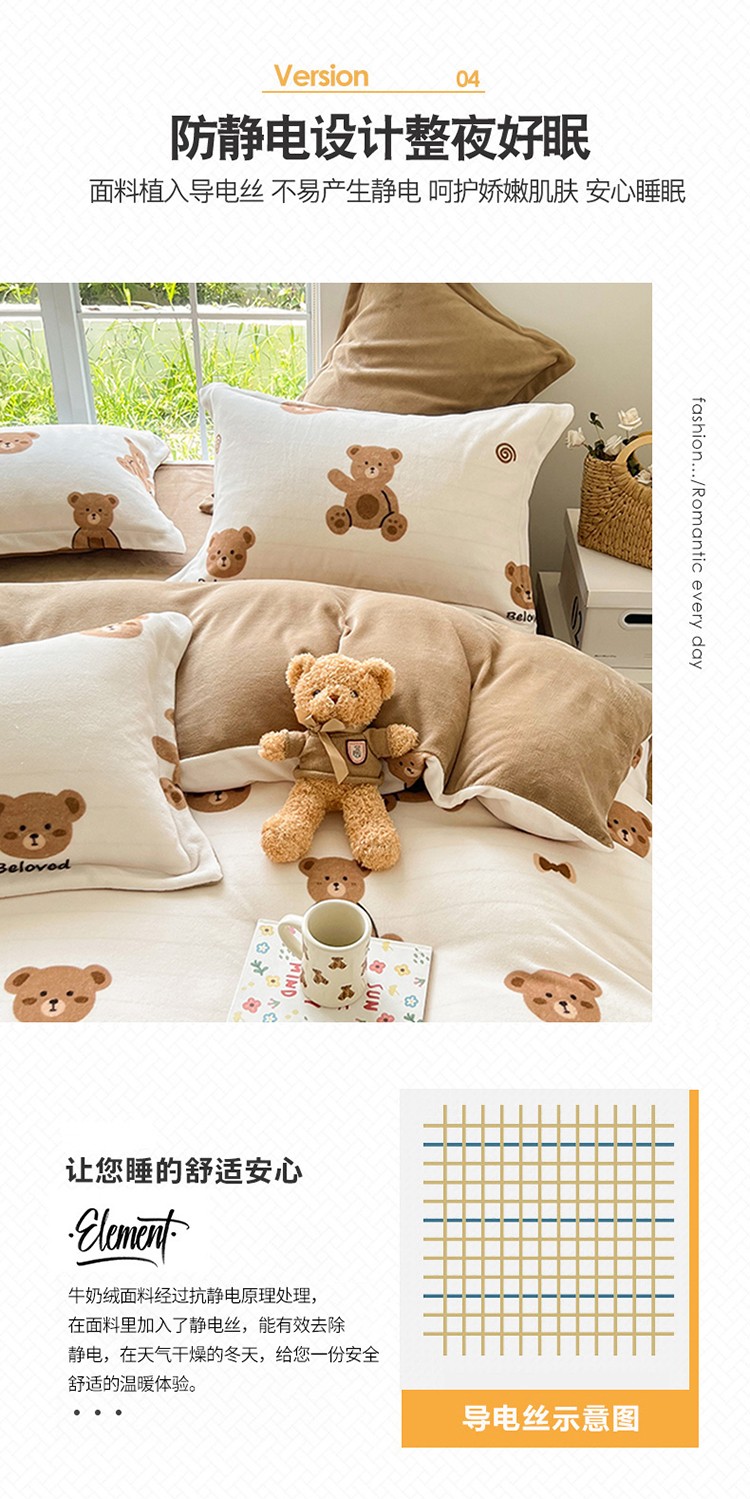 商品名称:总 呗旺鹿2022高克重ykk拉链印花小清新牛奶绒四件套直播