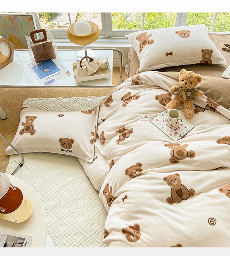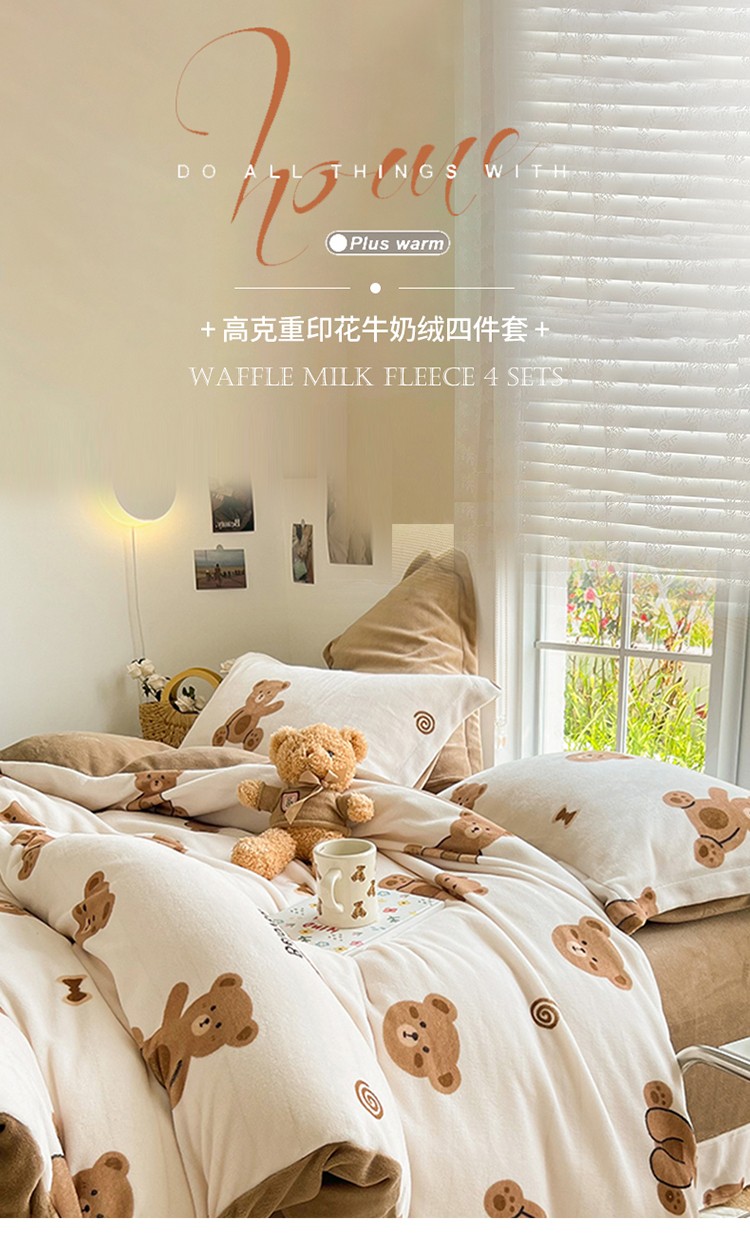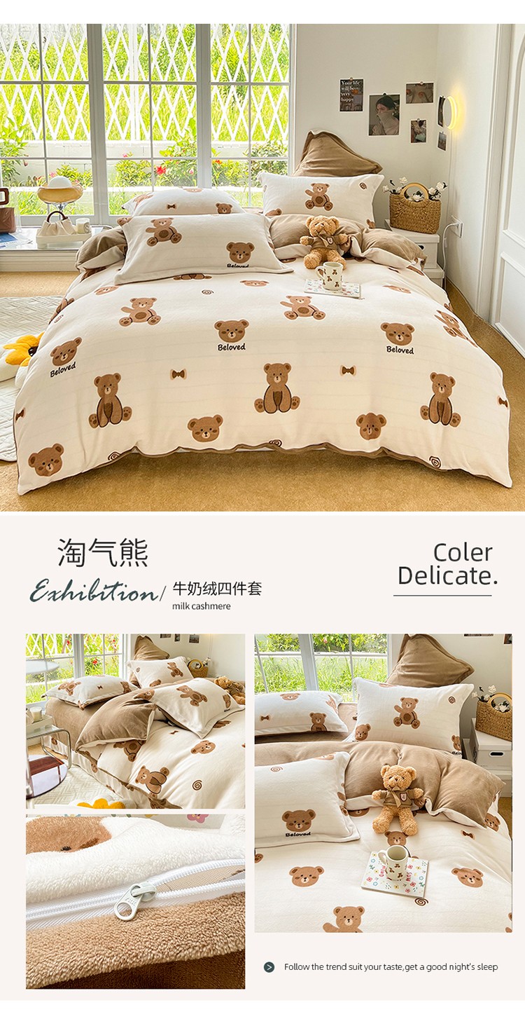 (总)呗旺鹿 2025新款A类高克重卡通印花牛奶绒印花四件套,蝴蝶结圆点小狗,开飞机的小熊,猫狗派对,奶油小猫,奶油星星狗,小熊的礼物,信封小熊,音乐小狗