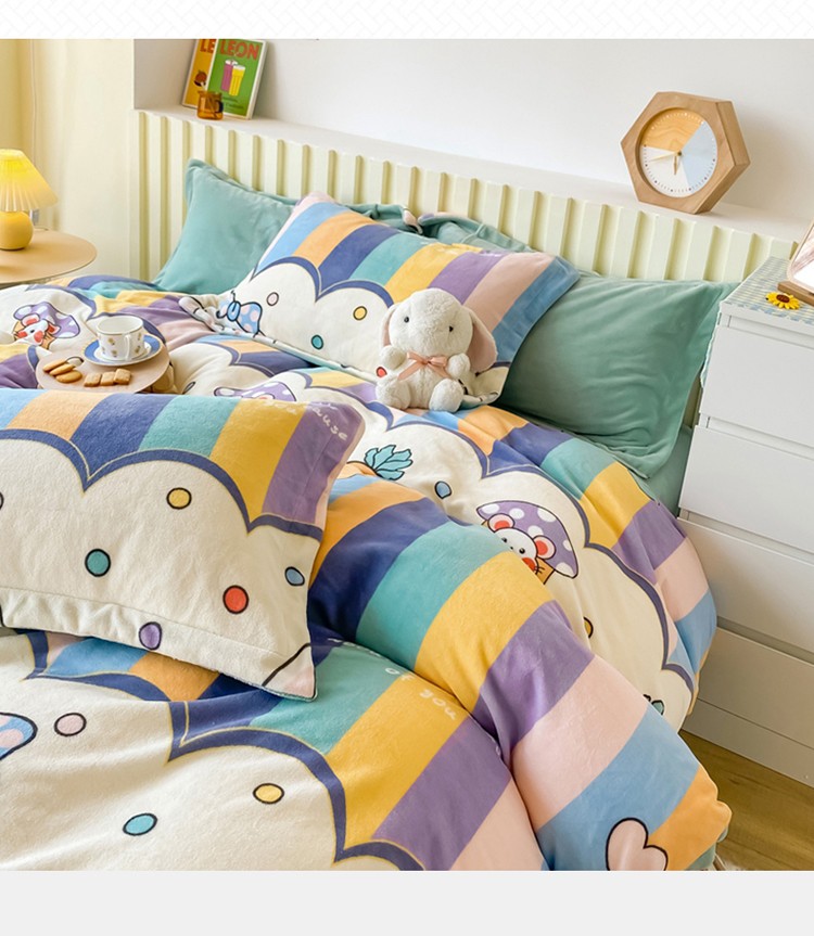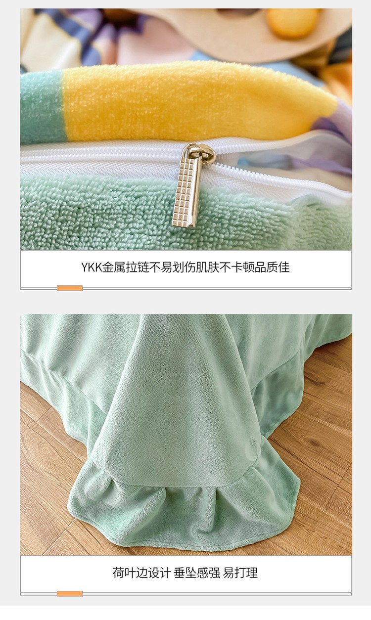 呗旺鹿2022高克重ykk拉链印花小清新牛奶绒四件套法莱绒直播彩虹兔