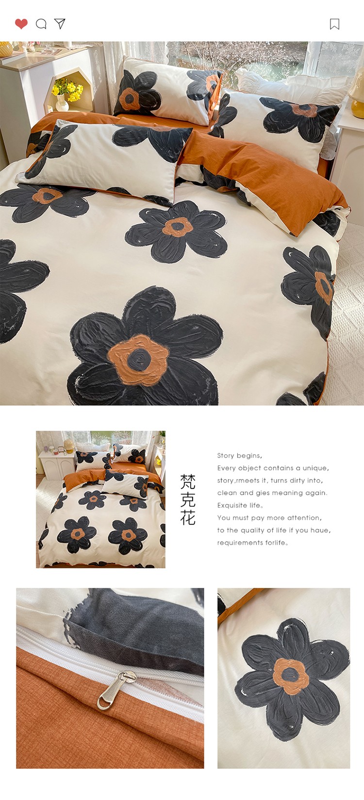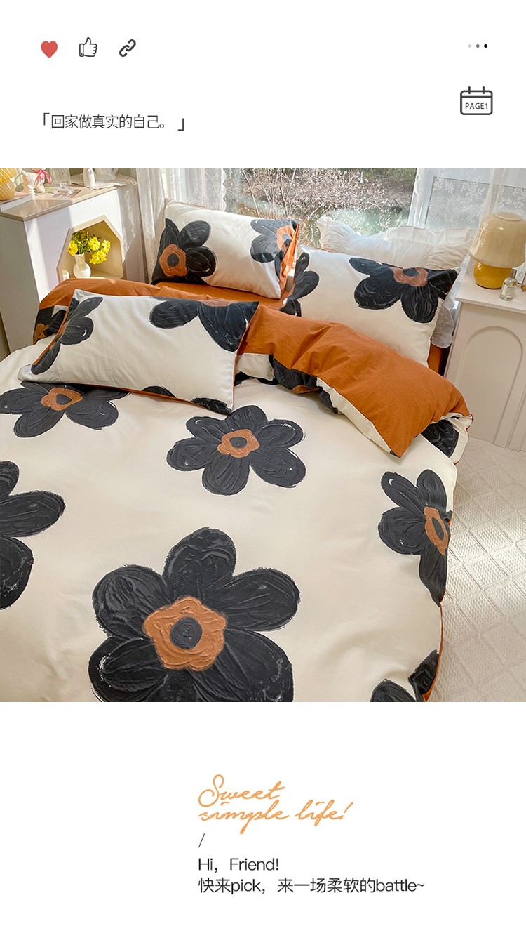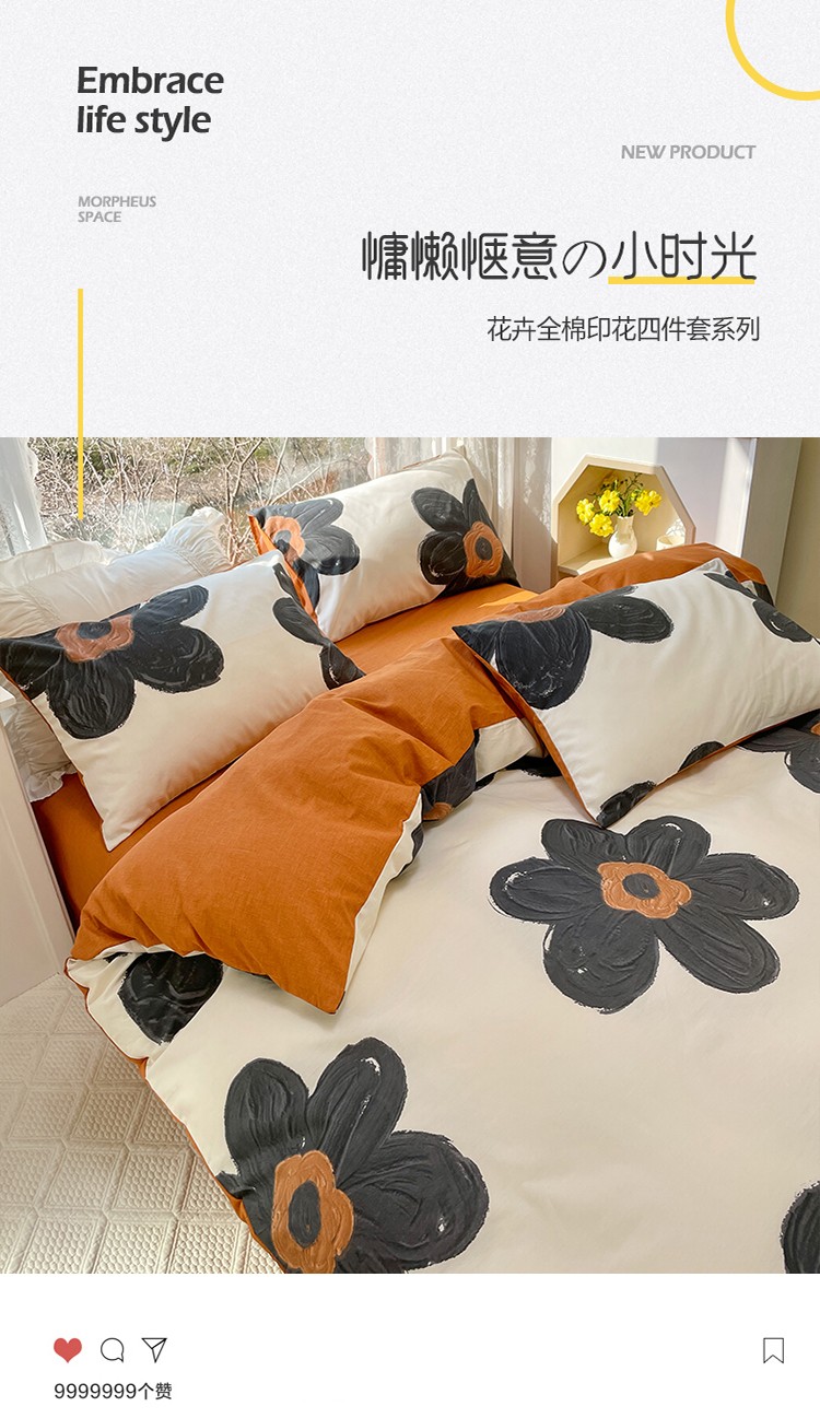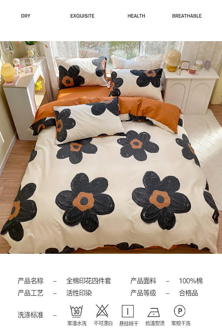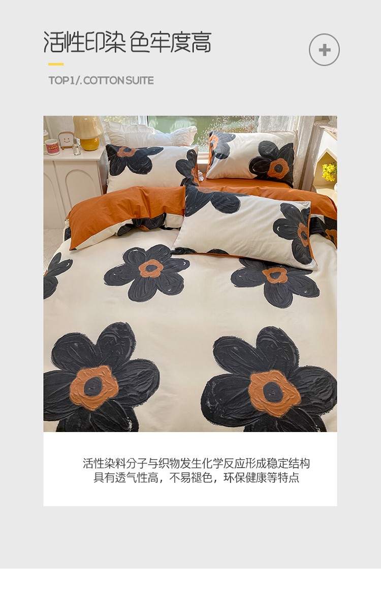 商品名称:瑞莱 2023秋季新款全棉印花四件套-花卉系列 梵克花