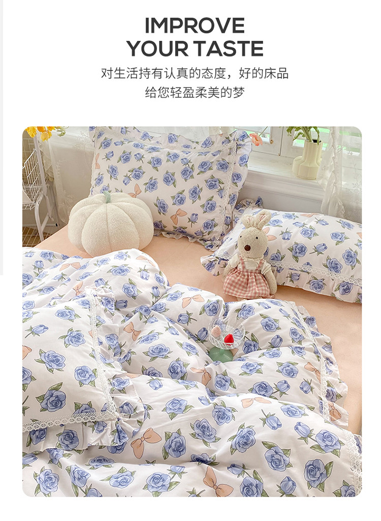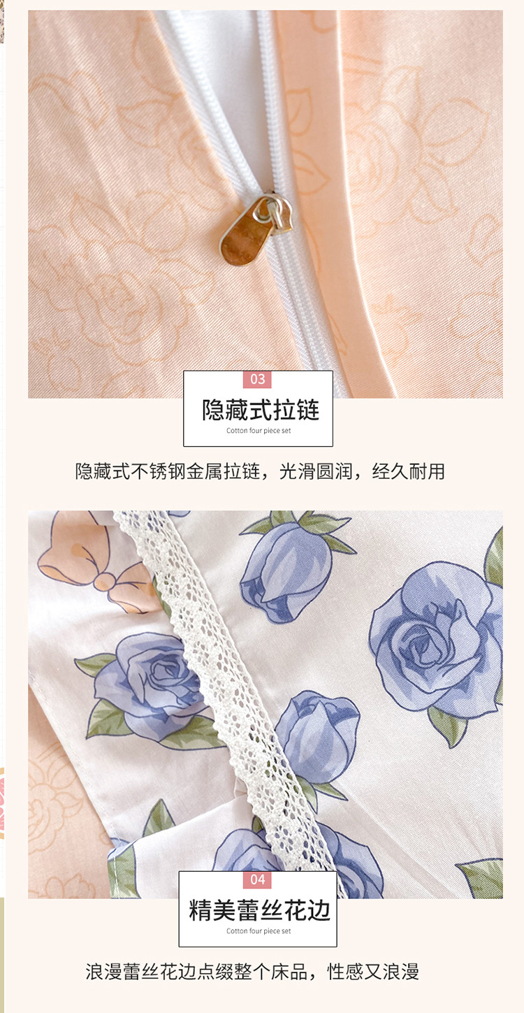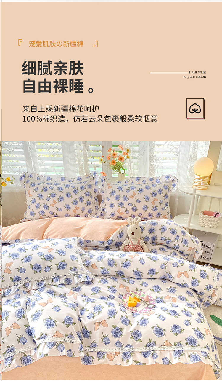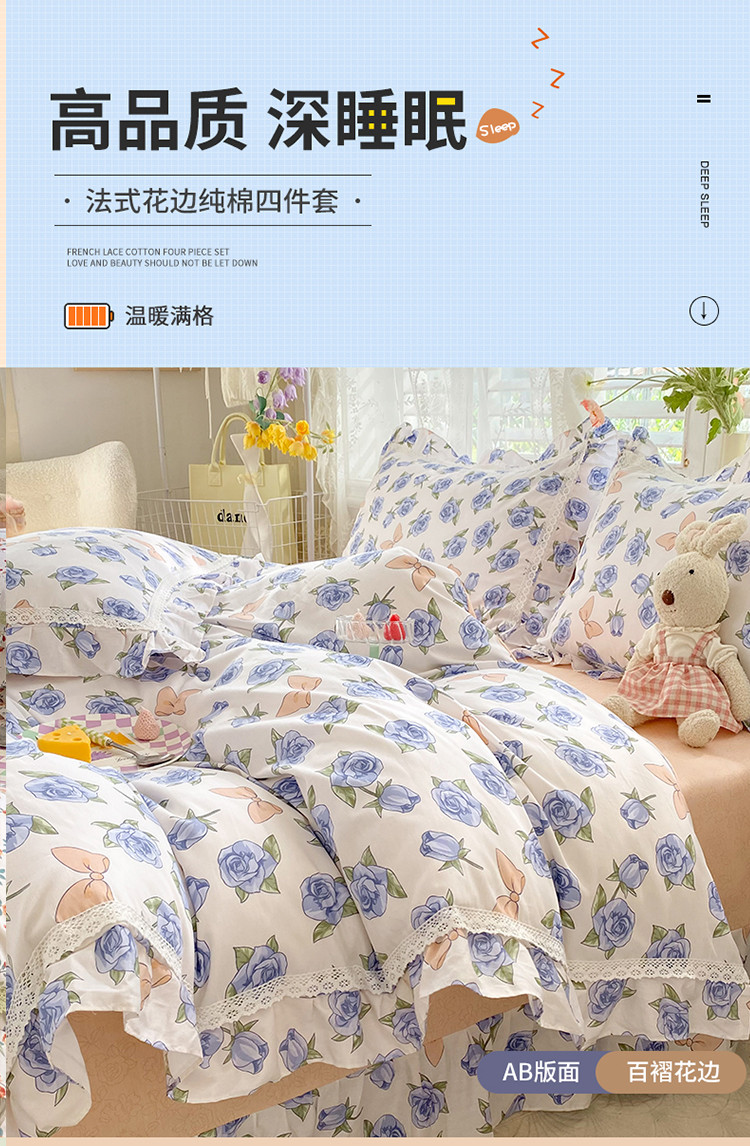 商品名称:艾唯希家纺 2024新款法式花边纯棉四件套-第二批 初见