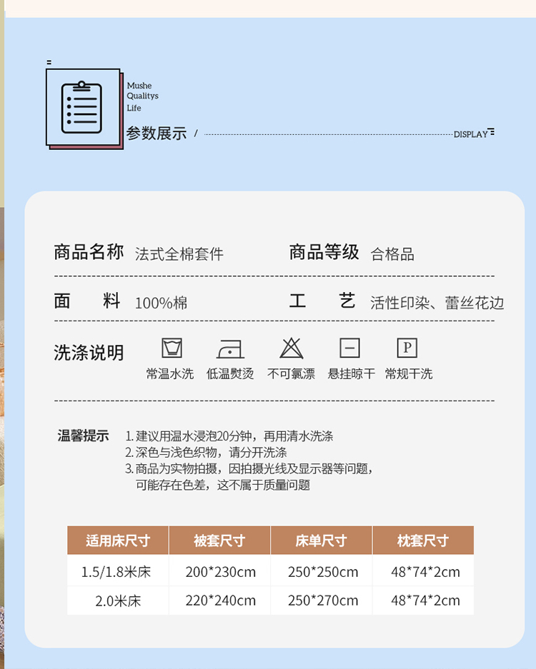 3、通州区市场监督局友情提醒,近期涉及到床上用品不褪色不掉毛不缩水的投诉和以世界知名品牌图案为面料的床品举报较多。请各商家自检自查,对照整改或进行下架处理。