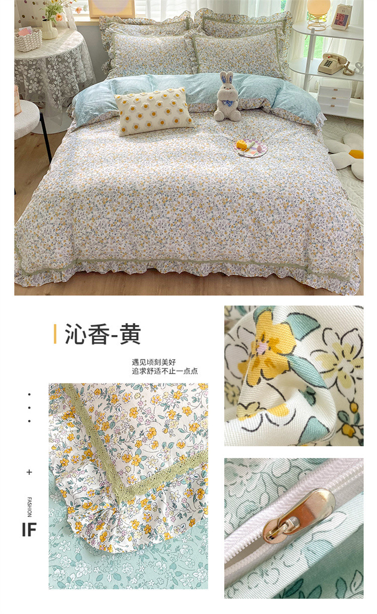 艾唯希家纺 2024新款法式花边纯棉四件套-第二批 沁香-黄