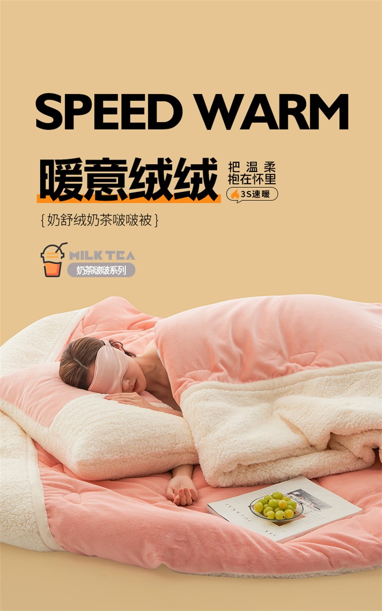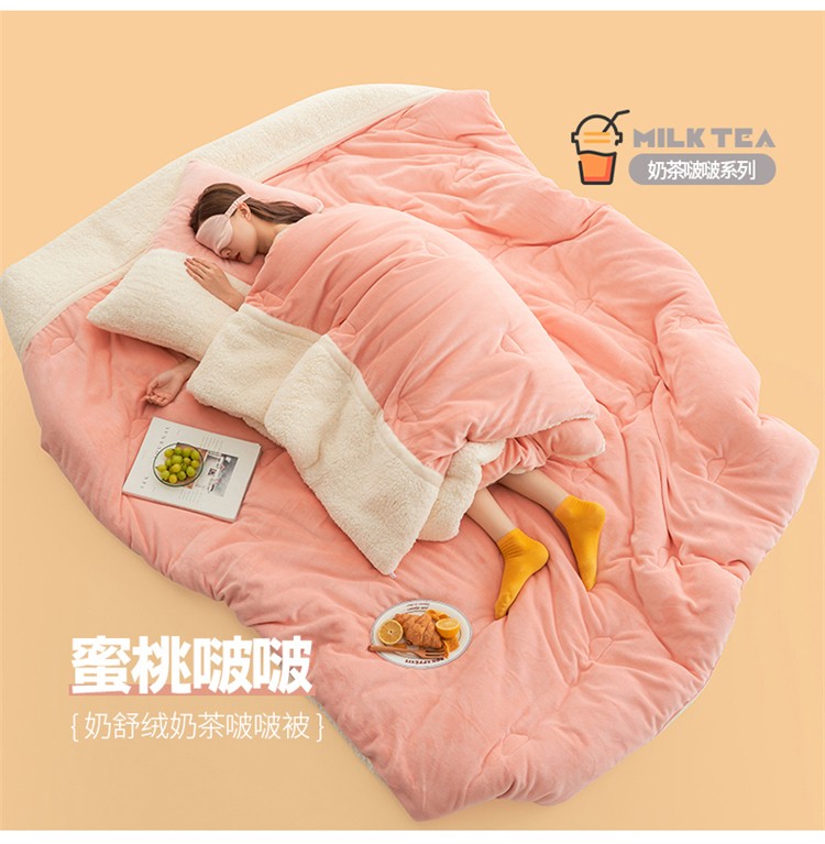 • 91家纺网 家纺一手货源 找家纺 莱宁 2022新款奶舒绒奶茶啵啵冬被春秋被加厚保暖学生绒冬被 蜜桃啵啵