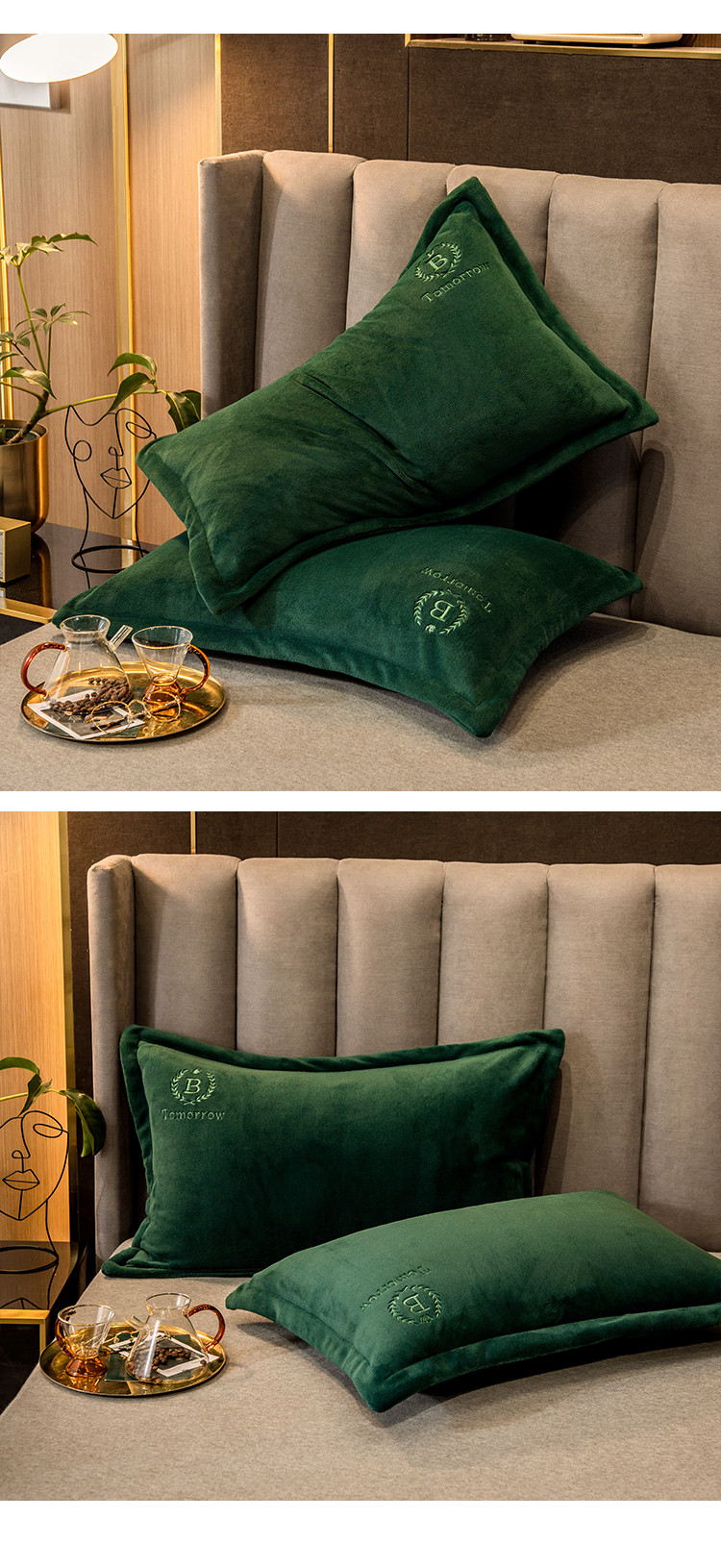 丽美人 2022新款加厚保暖纯色简约牛奶绒系列单品枕套 松柏绿一对