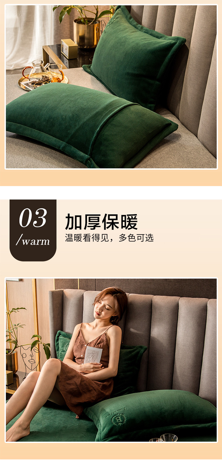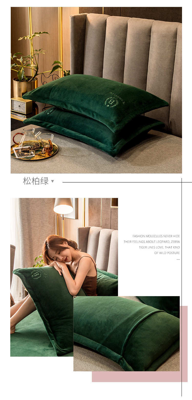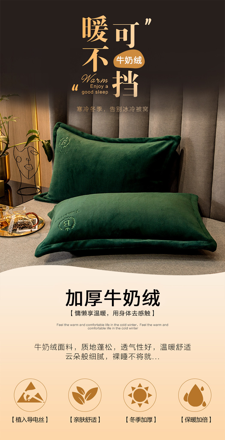 • 91家纺网 家纺一手货源 找家纺 丽美人 2022新款加厚保暖纯色简约牛奶绒系列单品枕套 松柏绿一对